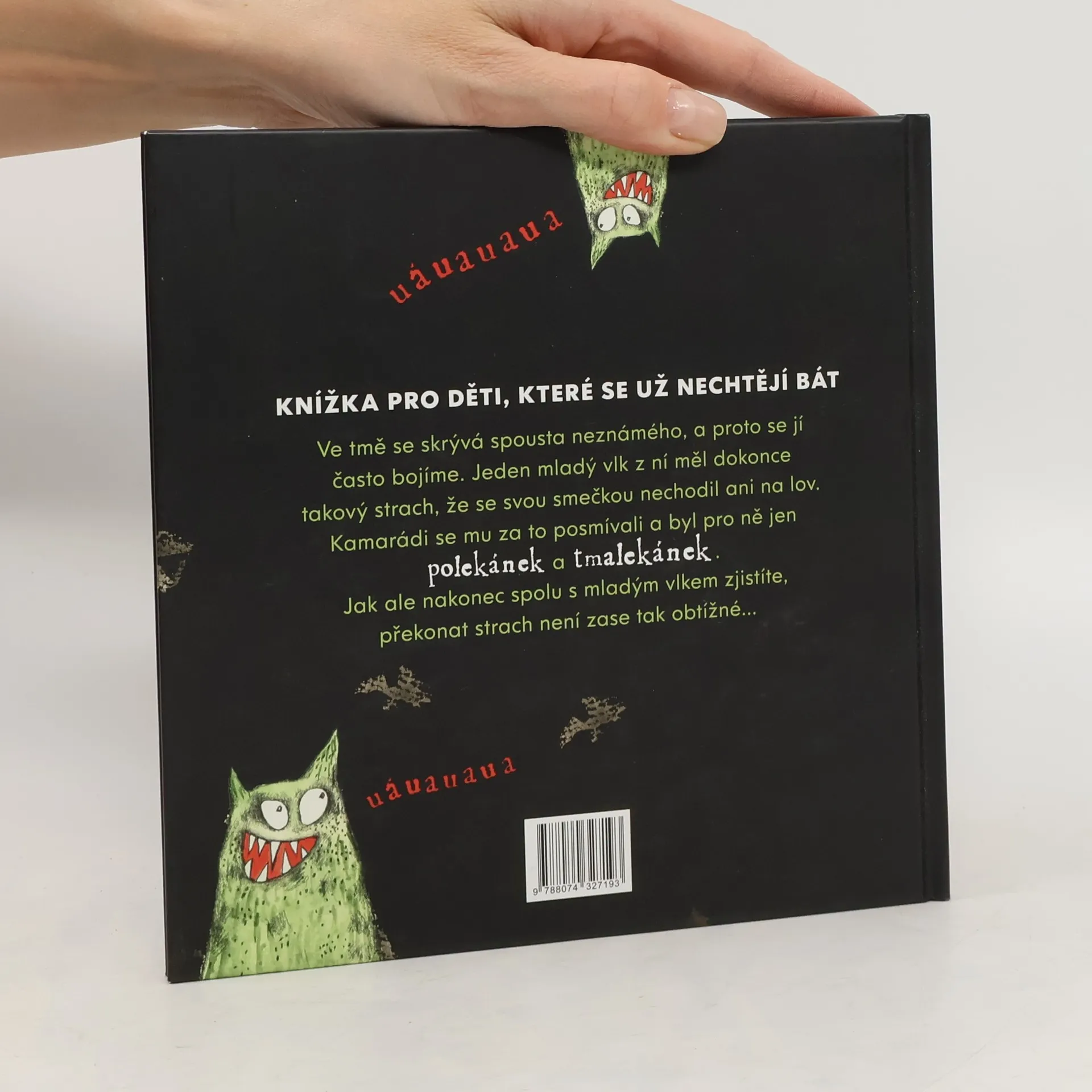 Ve tmě se skrývá spousta neznámého, proto je normální se tmy bát. Mladý vlk se jí také bál, nelovil se smečkou a kamarádi se mu posmívali. Ke zvládnutí strachu stačilo málo – setkání s mravencem a pár slov, pro své kamarády ve smečce se najednou stal hrdinou… Tento příběh vypráví táta vlk bázlivým vlčatům, aby je přiměl vyjít ven do tmy vstříc novým dobrodružstvím. Příběh ukazuje dětem, jak přijmout strach ze tmy a jak jej lze postupně překonat. Pomáhá děti povzbudit, že přijetí strachu a jeho sdílení je důležité jako první krok k jeho překonání. Text dokreslují moderní, dynamické, a přitom dobře čitelné ilustrace s výrazným emocionálním nábojem. Knížka je určena dětem od tří let a lze ji využít i jako první čtení.