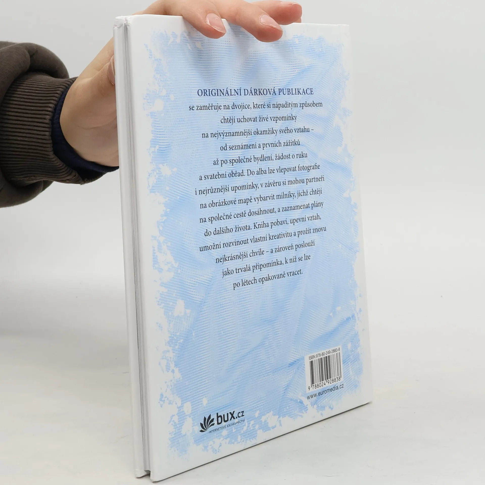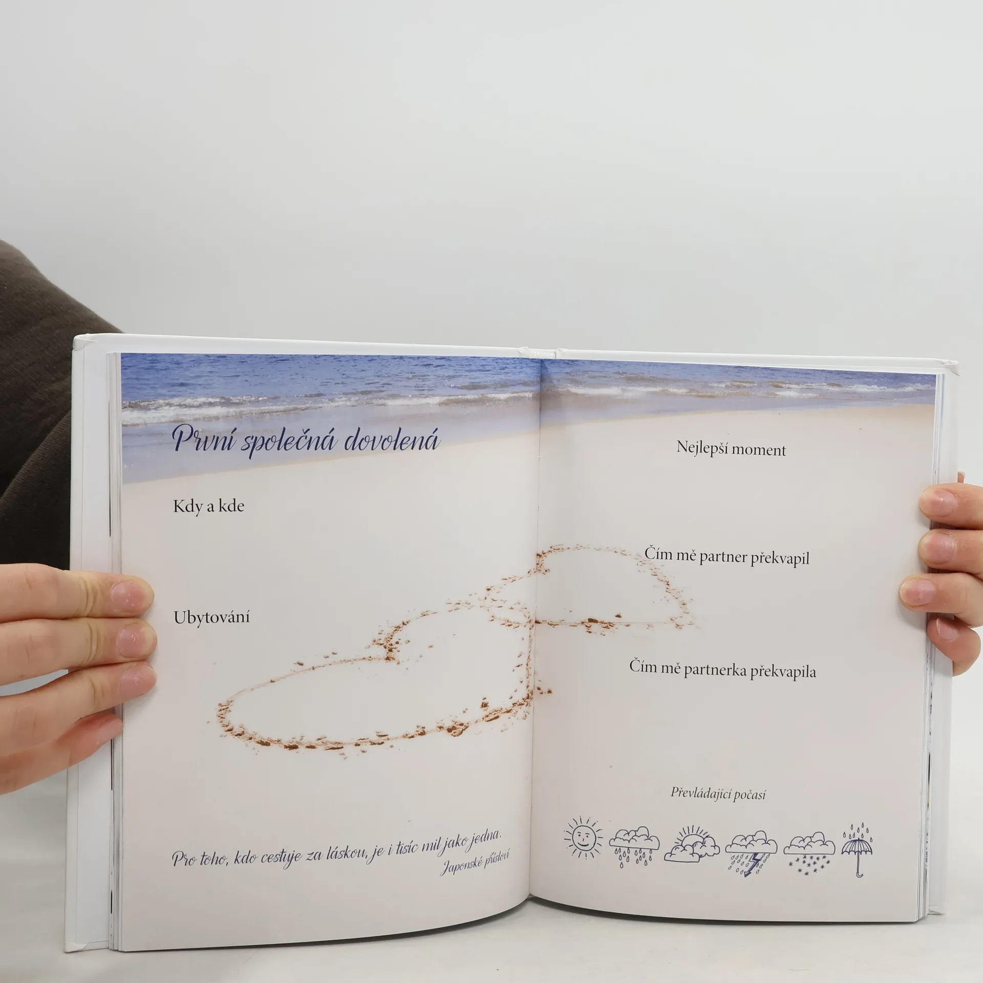 Originální dárková publikace se zaměřuje na dvojice, které si nápaditým způsobem chtějí uchovat živé vzpomínky na nejvýznamnější okamžiky svého vztahu – od seznámení, prvních zážitků a dovolené až po společné bydlení, žádost o ruku a svatební obřad. Do alba lze vlepovat fotografie i nejrůznější upomínky, v závěru si mohou partneři na obrázkové mapě vyznačit cestu, kterou chtějí spolu ujít, a zaznamenat předsevzetí do dalšího života. Kniha pobaví, upevní vztah, umožní rozvinout vlastní kreativitu a prožít znovu nejkrásnější chvíle – a zároveň poslouží jako trvalá připomínka, k níž se lze po létech opakovaně vracet.