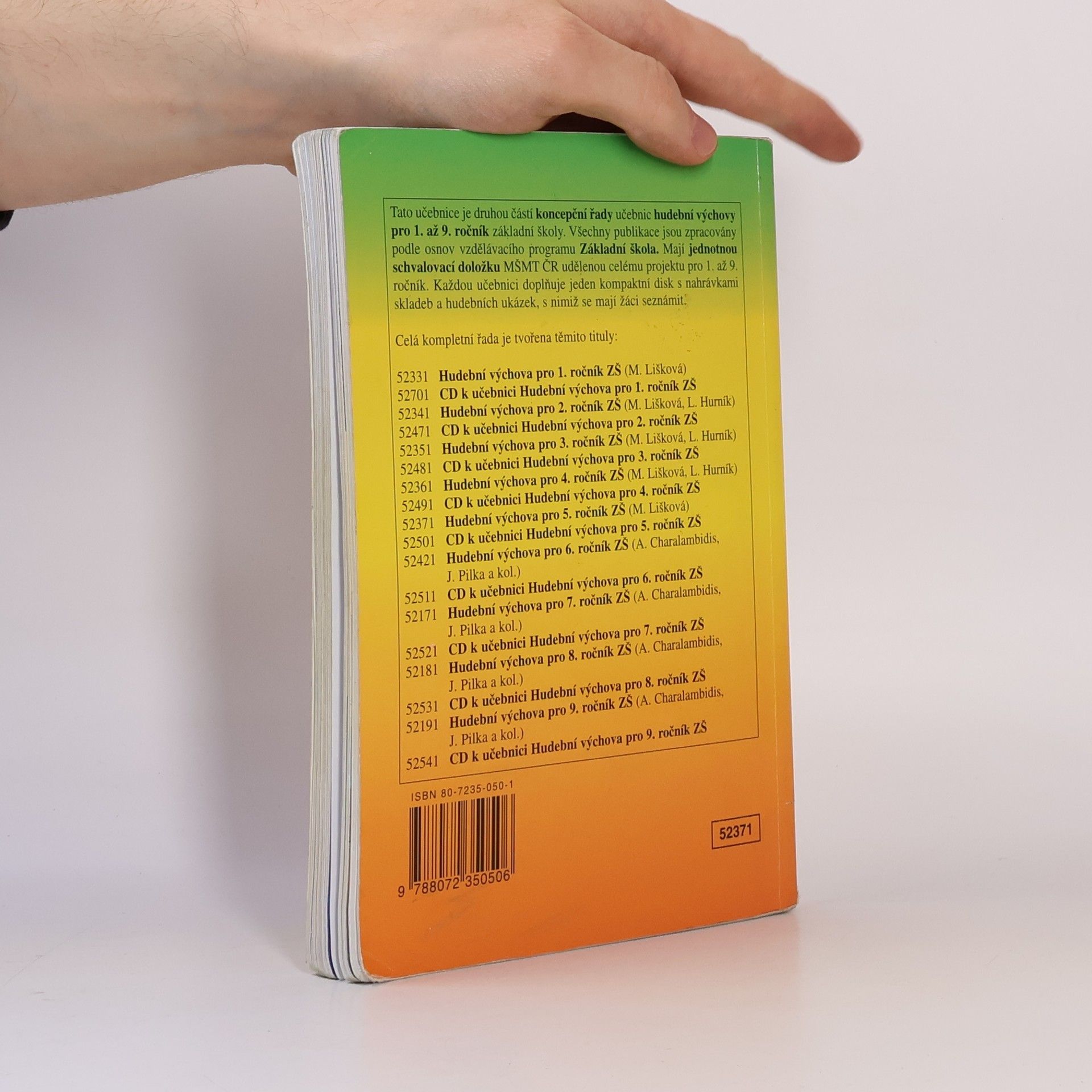 Pátá část ucelené řady pro 1.- 9. ročník ZŠ. Celá řada je zpracována podle vzdělávacího programu Základní škola. Pro každý ročník je určena jedna učebnice, provázená kompaktním diskem s nahrávkami hudebních ukázek potřebných pro práci s učebnicí. Ke každé učebnici je vydána metodická příručka pro učitele. Celá řada má jednotnou schvalovací doložku MŠMT ČR.