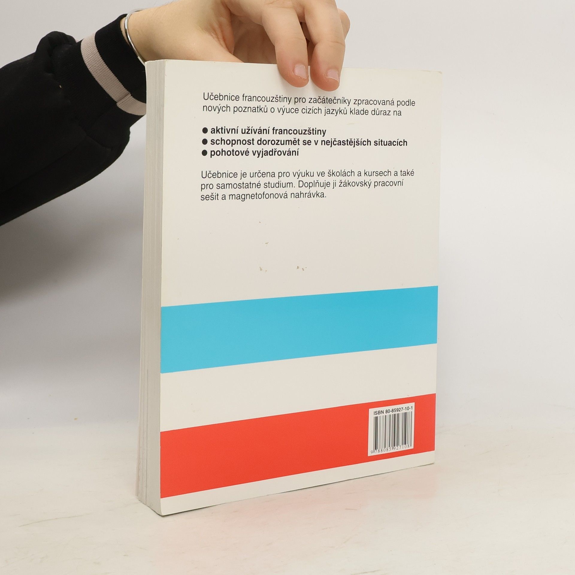Učebnice francouzštiny pro začátečníky je zpracovaná podle nových poznatků o výuce cizích jazyků. Klade důraz na aktivní užívání francouzštiny, schopnost dorozumět se v nejčastějších situacích a pohotové vyjadřování. Obsahuje základní gramatiku a slovní zásobu potřebnou pro komunikaci v nejběžnějších situacích, a to s důrazem na potřeby českého turisty ve Francii. Je určena pro výuku ve školách, v kursech, a také pro samostatné studium. Učebnici doplňuje žákovský sešit a sada tří audiokazet. Předpokládá se samostatná práce doma se žákovským sešitem a nahrávkou, proto je do sešitu pro žáky zařazen i klíč téměř ke všem cvičením.