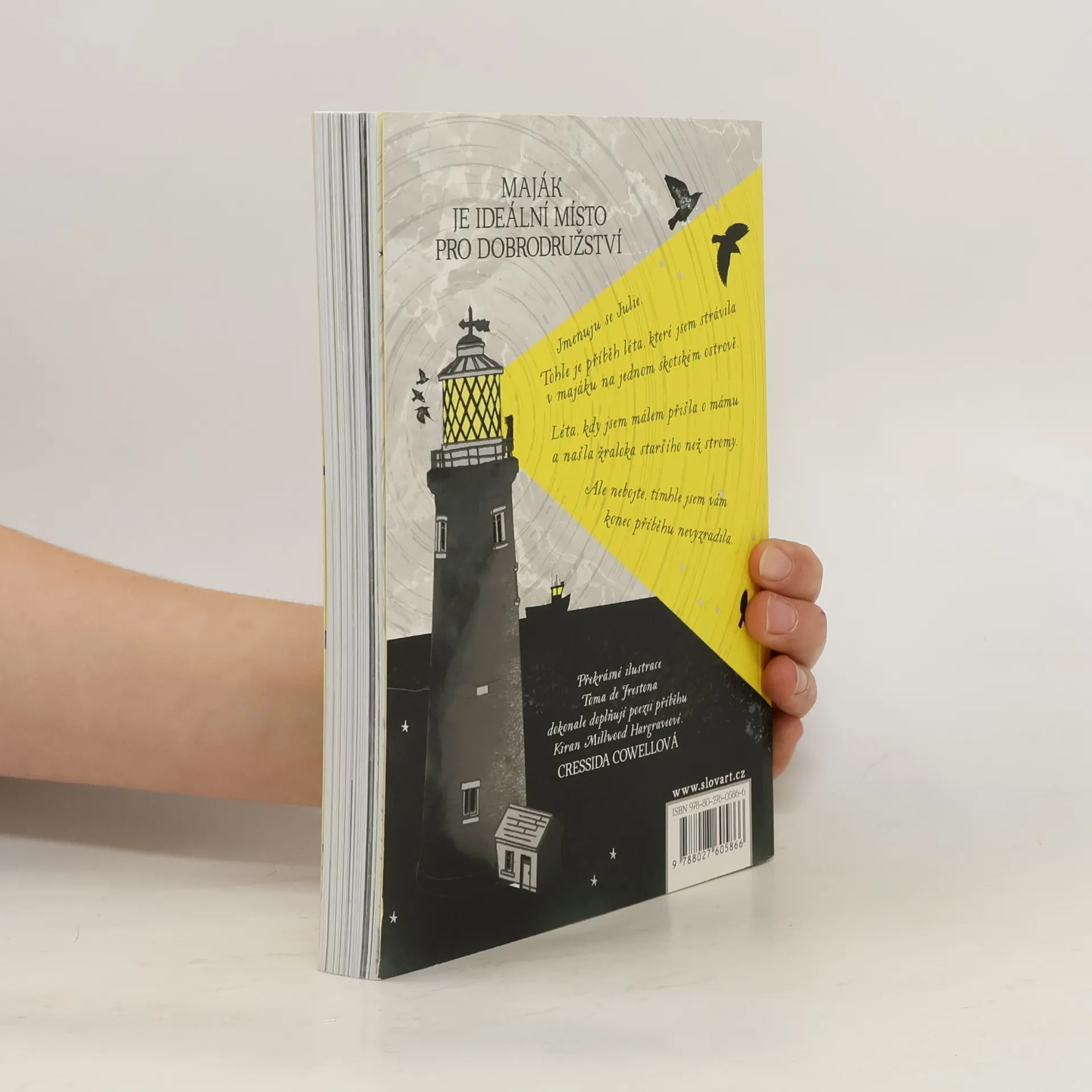 Jmenuju se Julie. Tohle je příběh léta, kdy jsem málem ztratila svou mámu a našla žraloka staršího než stromy. Julie se spolu se svými rodiči vydala na odlehlý ostrov v Severním moři, daleko od jejich domova v Cornwallu - její táta sem přijel za prací a máma je odhodlaná stůj co stůj najít nepolapitelného žraloka grónského. Julie si není tak úplně jistá, co bude na ostrově celé prázdniny dělat ona, ale s kočkou Nudlí, knížkami z místní knihovny a novým kamarádem Kinem má záhy o zábavu postaráno. Když však začne hrozit, že mámina posedlost celou rodinu stáhne ke dnu, octne se Julie v temných hlubinách dobrodružství, nad kterými se tyčí maják plný naděje…