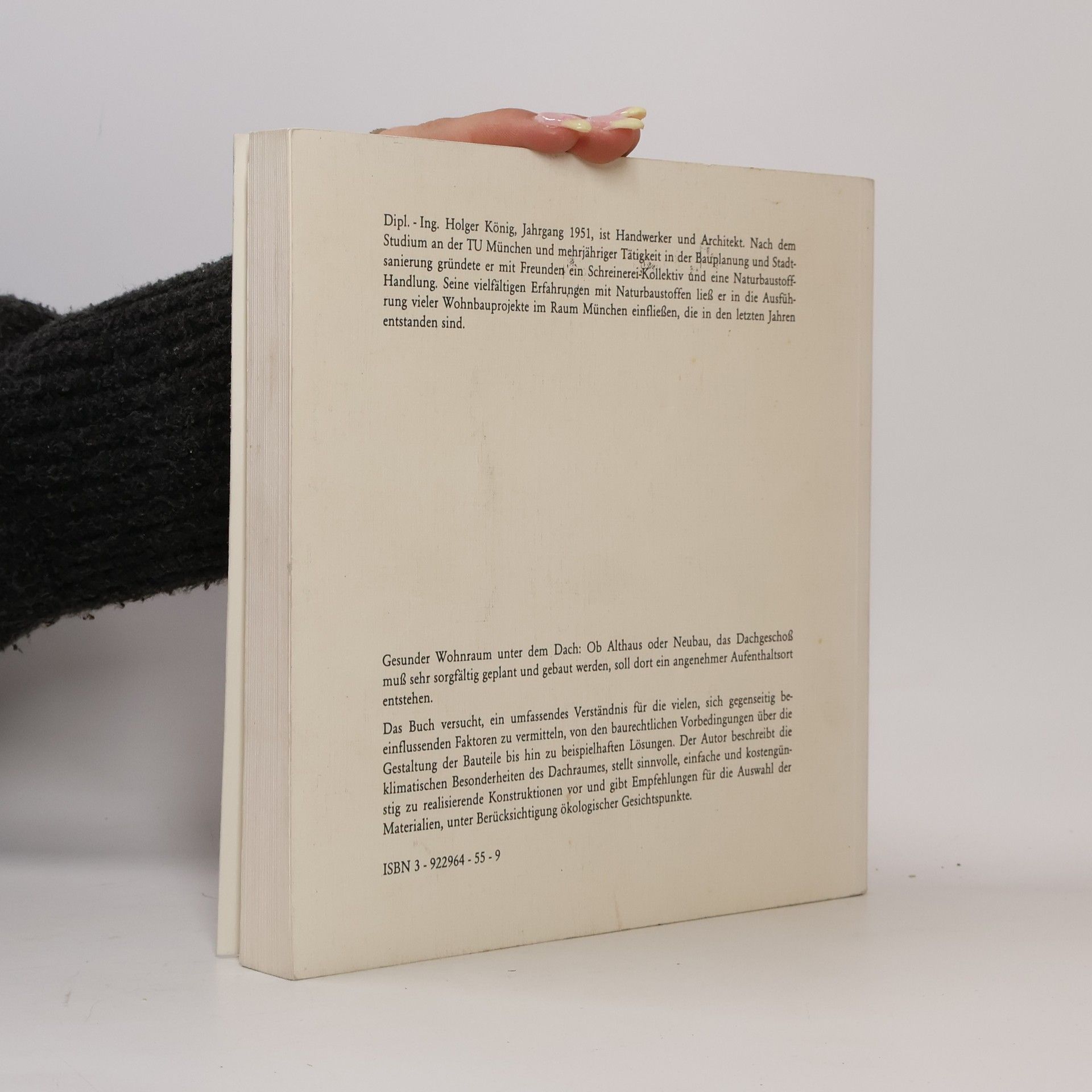 Gesunder Wohnraum unter dem Dach - Umbau, Ausbau, Neubau. Dies ist kein Buch, das die Wunschträume finanzstarker Großstädter beschreibt; vielmehr werden hier detailliert und verständlich praktische Lösungen für die vielen Probleme aufgezeigt, die beim Ausbau eines Daches für Wohnzwecke entstehen. Von den baurechtlichen Vorbedingungen über die Gestaltung der Bauteile bis hin zu beispielhaften Lösungen will das Buch das Verständnis für die vielen, sich gegenseitig beeinflussenden Faktoren vertiefen. Der Autor, Architekt und Baubiologe seit vielen Jahren, beschreibt die klimatischen Besonderheiten des Dachraumes, stellt sinnvolle, einfach und kostengünstig zu realisierende Konstruktionen vor und gibt Empfehlungen für die Auswahl der Materialien unter Berücksichtigung ökologischer Gesichtspunkte. „Ein umfassender und konsequenter Ratgeber für Bauherren, Handwerker und Planer, denen daran liegt, durch sorgfältig ausgeführte und bauphysikalisch einwandfreie Konstruktionen einen hochwertigen Aufenthaltsort unter dem Dach zu schaffen.“ (Schweizer Baublatt)