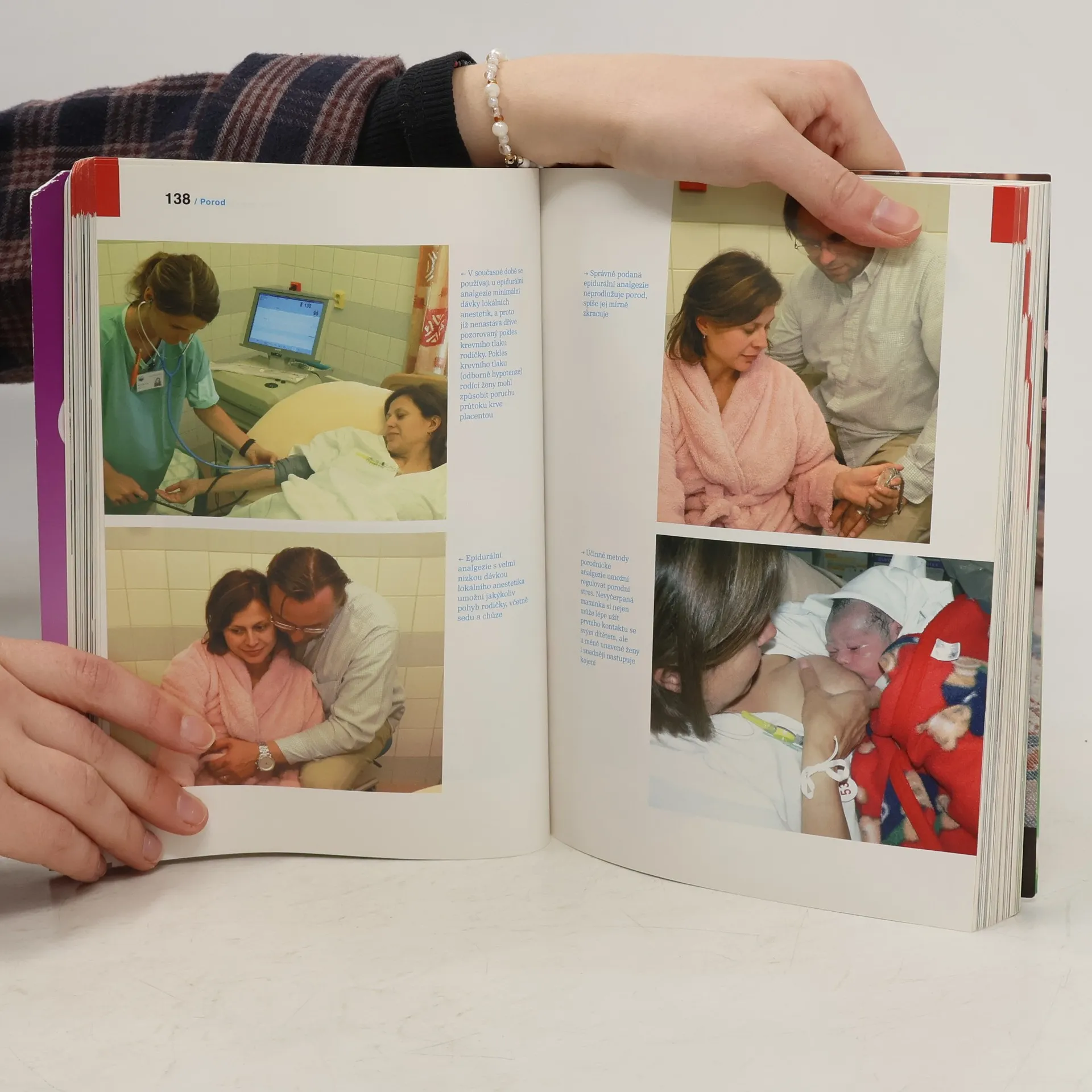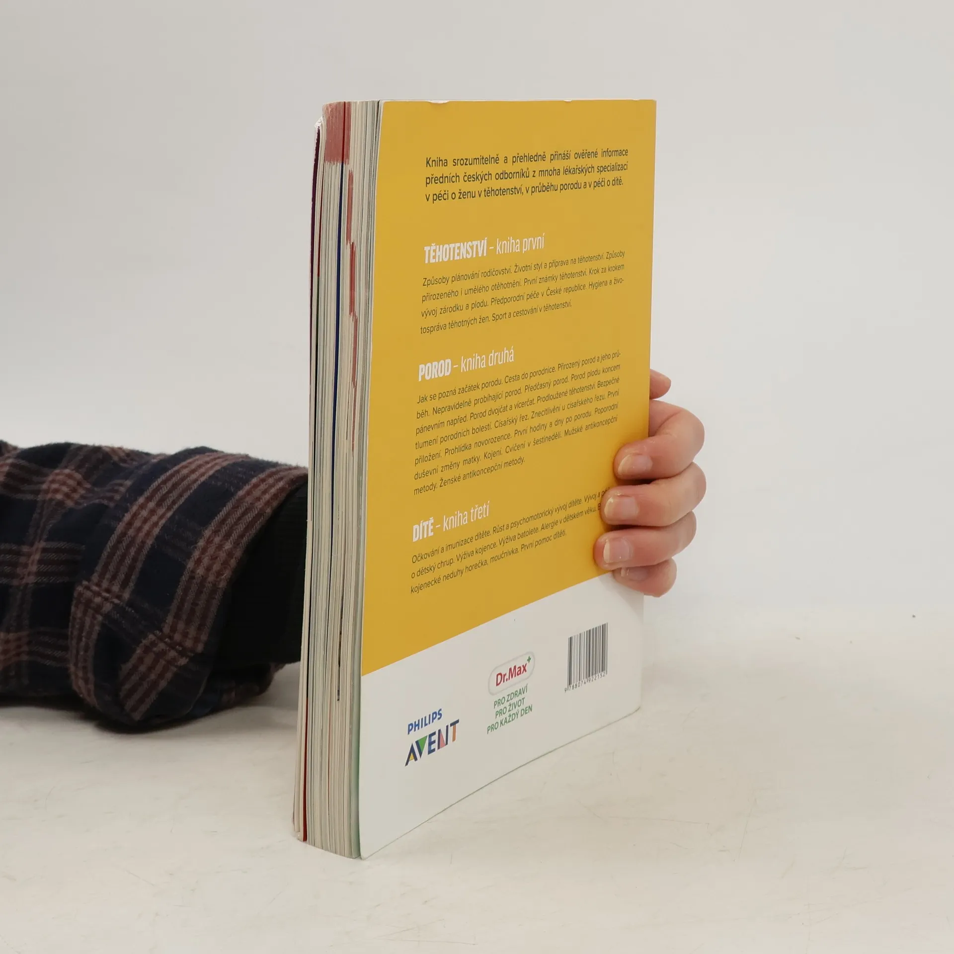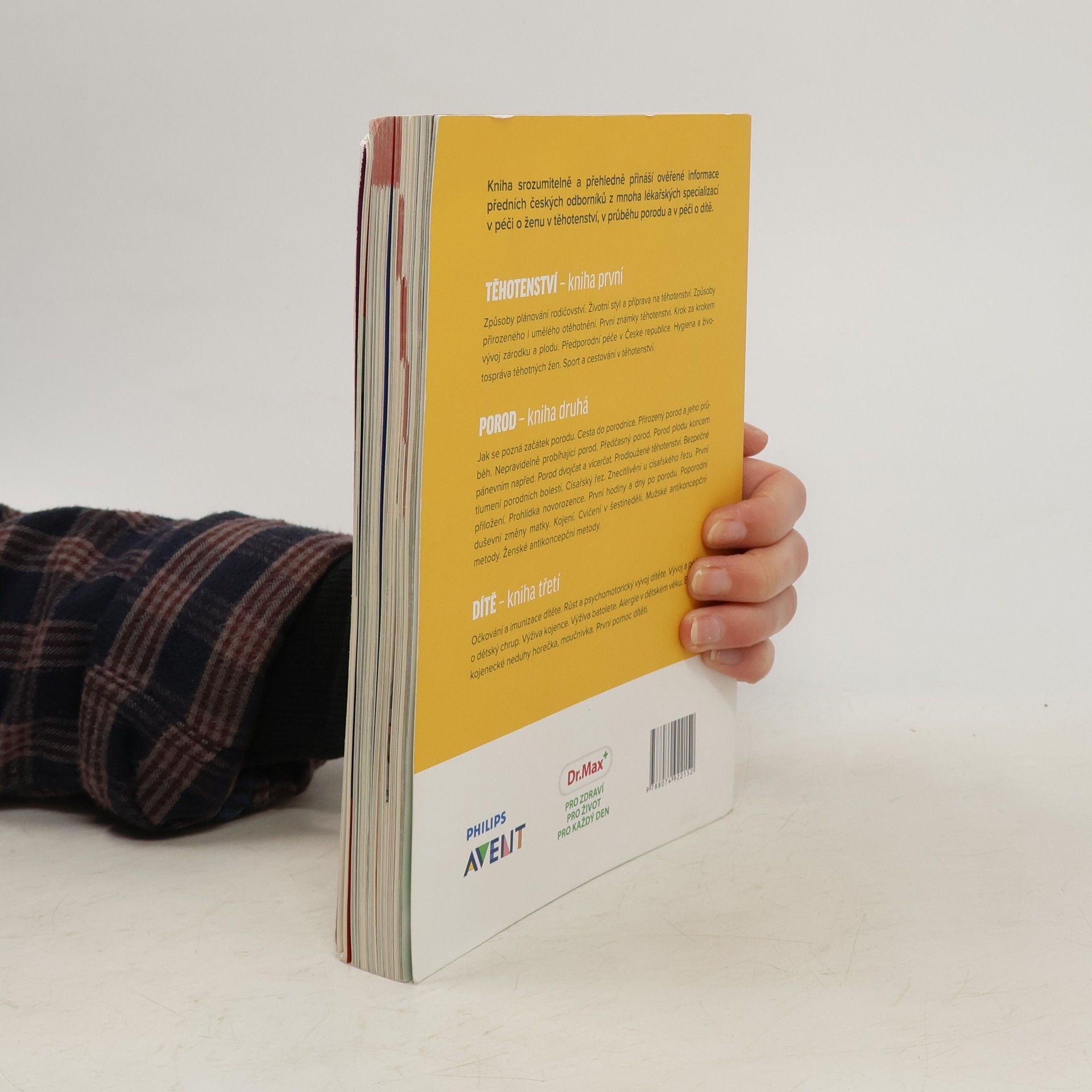 Kniha srozumitelně a přehledně přináší ověřené informace předních českých odborníků z mnoha lékařských oborů o těhotenství, porodu a péči o dítě. Jak se pozná začátek porodu. Cesta do porodnice. Porod přirozený. Průběh porodu. Nepravidelně probíhající porod. Předčasný porod. Porod plodu koncem pánevním napřed. Porod dvojčat a vícerčat. Prodloužené těhotenství. Bezpečné tlumení porodních bolestí. Císařský řez. Znecitlivění u císařského řezu. Prohlídka novorozence. První hodiny a dny po porodu. Poporodní duševní změny matky. Kojení. Cvičení v šestinedělí. Mužské antikoncepční metody. Ženské antikoncepční metody.
