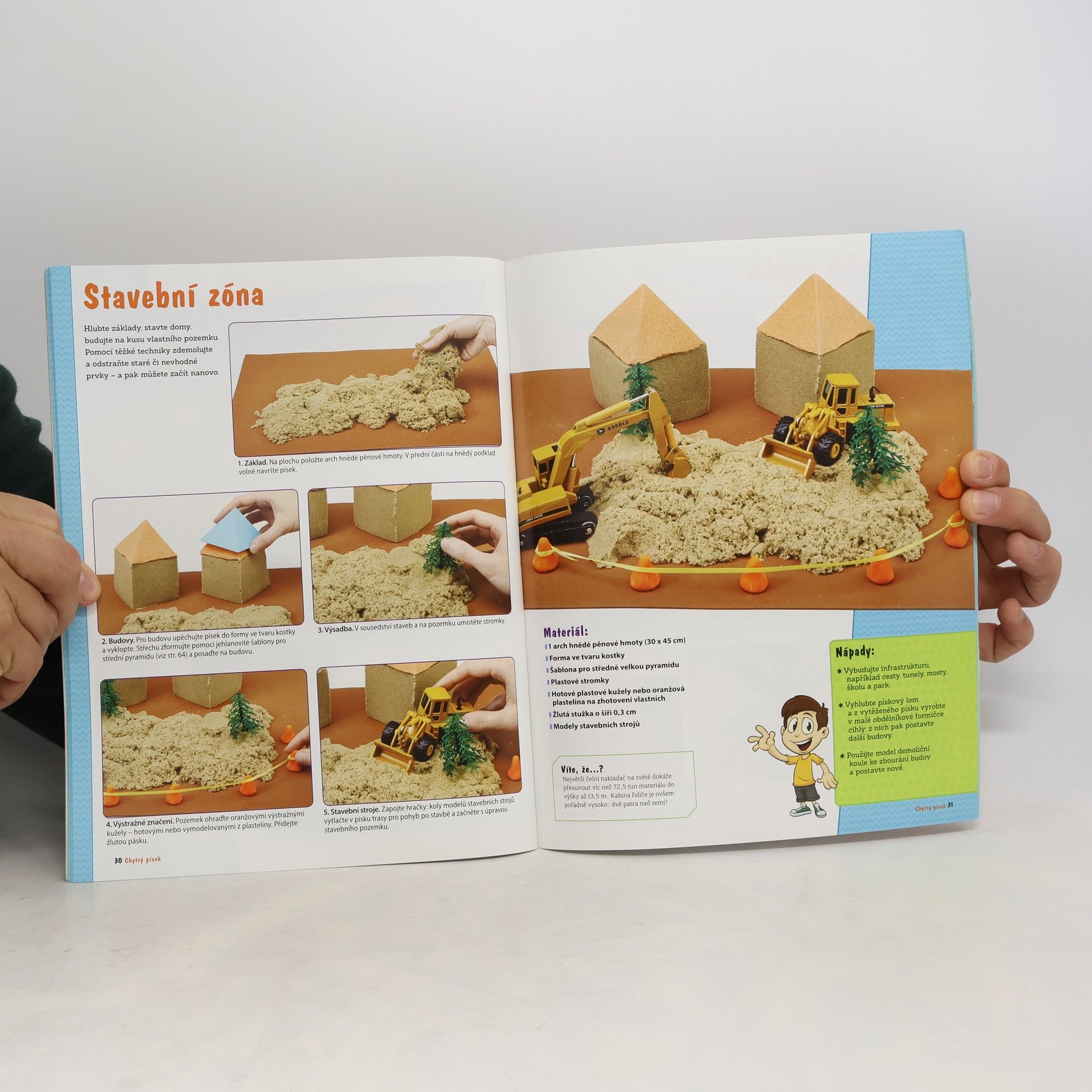 Snadno tvarovatelný chytrý písek je velmi příjemný na dotek. Je to měkká a hebká hmota, umožňující dětem zdokonalovat se v jejich dovednostech. Podporuje zlepšení jemné motoriky prstů a rukou. Práce s kinetickým pískem je vzrušující, působí terapeuticky a redukuje stres. Dětské dlaně i prsty zakusí nečekaný zážitek, když z něj vytvoří nejrůznější obrazce a tvary – pyramidy, hrady, pláže, eskymáckou vesnici, dorty a jiné moučníky, lákavý kopeček zmrzliny, pizzu, svíčky nebo staveniště.