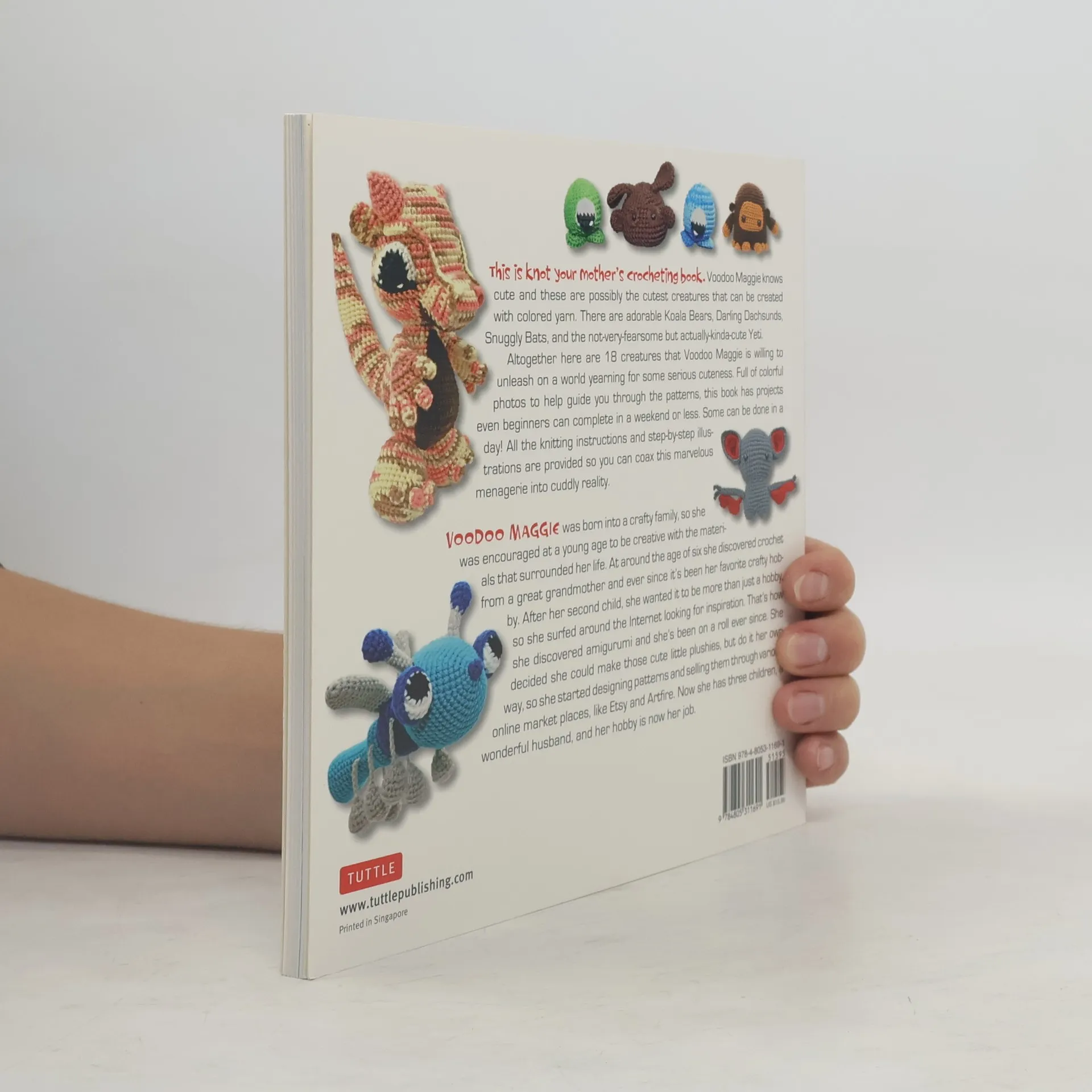 Crochet cute Amigurumi animals with this fun Japanese crafting book!Knot your mother's crochet! Weave your way into the yarn filled world of Japanese Amigurumi or "crocheted stuffed toys" with adorable creatures and cuddly new characters! Whether you're honing a new craft or in search of creative needlework inspiration let Voodoo Maggie show you the way.There are adorable Koala Bears, Darling Dachsunds, Nuggly Bats, and the not-very fearsome but actually-kinda-cute yeti. Altogether there are 18 creatures that Voodoo Maggie is willing to unleash on a world yearning for some serious cuteness. Full of colorful photos to help guide you through the patterns, this book has projects even crochet beginners can complete in a weekend or less. Voodoo Maggie's Adorable Amigurumi walks you step-by-step through the distinct art of Japanese crochet. Artful designs, easy-to-follow knitting instructions and detailed illustrations allow you to create the most delightful crocheted Japanese miniatures easily.Amigurumi animals include: All of the crochet patterns are simple enough for crochet enthusiasts of all ages and skill levels. Some projects are so simple they can be completed in a day!