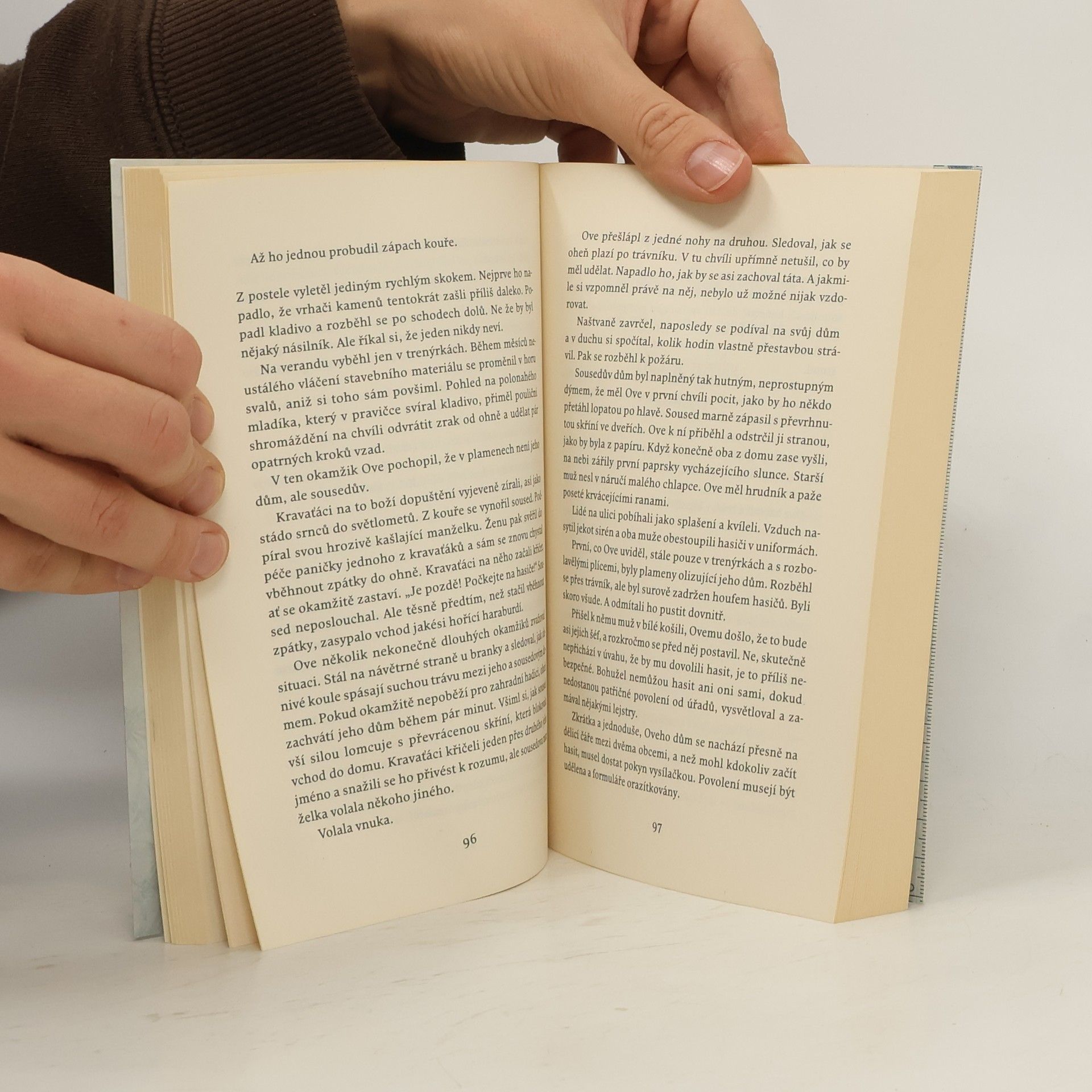 Román o lásce, pořádném nářadí a o tom, proč je důležité jezdit saabem. Ovemu je padesát devět let. Řídí saab. Na pozici předsedy družstva vlastníků byl sice vystřídán už před pár lety — což on sám považuje za převrat —, ale to mu rozhodně nebrání ve vykonávání funkce strážce pořádku. Samozvaného strážce pořádku. Když se do protějšího domku přistěhují noví sousedé a místo pozdravu se jim jen tak mimochodem podaří nacouvat do Oveho poštovní schránky, spustí se kolotoč nečekaných událostí — začíná příběh o překvapivém přátelství, toulavé kočce a prastarém umění řídit. A o tom, jak se změní životy lidí, kteří se s Ovem setkají.