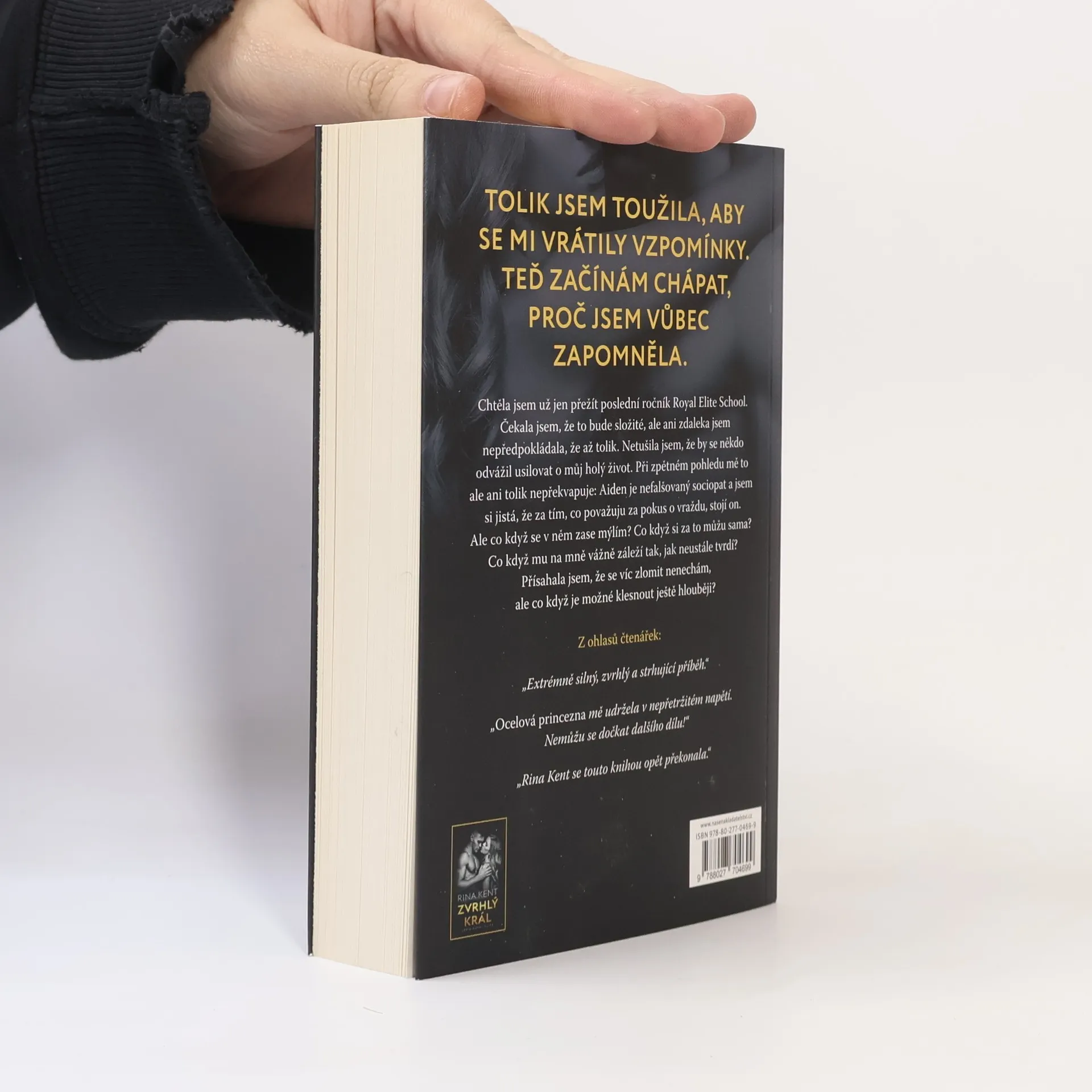 Princezna by neměla sesadit krále.ElsaŘekl, že mě zničí, a přesně to také udělal.Možná jsem prohrála bitvu, ale válka ještě ani zdaleka neskončila.Říká se, že každý převrat začíná prvním tahem.Nikdo se ale nezmínil, že mě král při svém pádu strhne s sebou.AidenPokud malá princezna od Steelových chce válku, pak ji dostane.Existuje jen jedno pravidlo: buď moje pravidla, nebo žádná.Jen se nestyď a ukaž mi, co v sobě máš, miláčku.Ocelová princezna je druhým dílem série Royal Elite. Je to temná romance o středoškolském tyranovi pro zralé mladé čtenáře a obsahuje kontroverzní situace, které mohou někomu připadat urážlivé.Tato kniha je součástí trilogie, nejedná se o samostatný román.