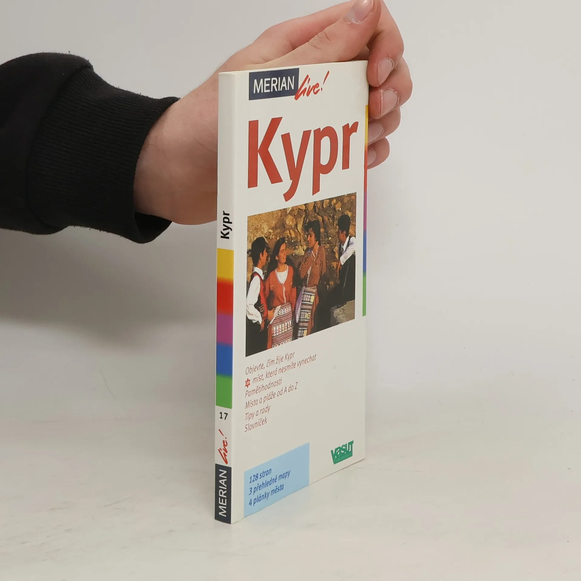 Turistický průvodce. Objevte, čím žije ostrov ve východním Středomoří. 10 míst, která nesmíte vynechat. Naše tipy. Nyní s atlasem a popisem cesty - 3 přehledné mapy, 4 plánky měst. Ubytování a kam na jídlo: Nejlepší adresy, které jsme pro vás vybrali a ohodnotili. Slovníček kulinářských výrazů. Objevte Kypr: zavedeme vás na nejdůležitější místa. A navíc kapitoly "Sport a pláže" a "Zábava pro děti". Tipy na výlety: Nejkrásnější výlety a procházky s praktickým popisem cesty. Aktuální informace: Kypr od A do Z. Tabulky průměrných teplot a vzdáleností. Slovníček.