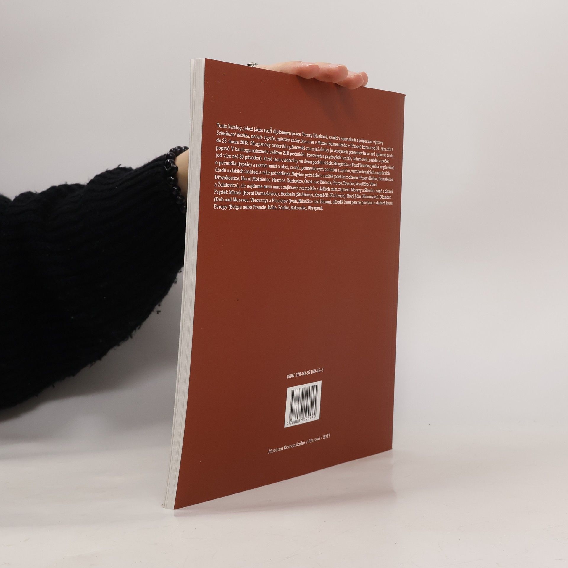Jedná se o katalog, který vychází z diplomové práce "The Sigillography Collection of Comenius Museum in Přerov". Byl vytvořen pro prezentaci této sbírky v souvislosti s přípravou výstavy "Schváleno! Razítka, pečetě, typáře, městské znaky". Sbírka obsahuje celkem 218 pečetidel, kovových a pryžových razítek, datumovek, razidel a pečetí. Jedná se o pečetidla a razítka měst a obcí, cechů, průmyslových podniků a spolků, vrchnostenských a správních úřadů a dalších institucí a také jednotlivců, které pochází převážně z okresu Přerov, ale i dalších míst.