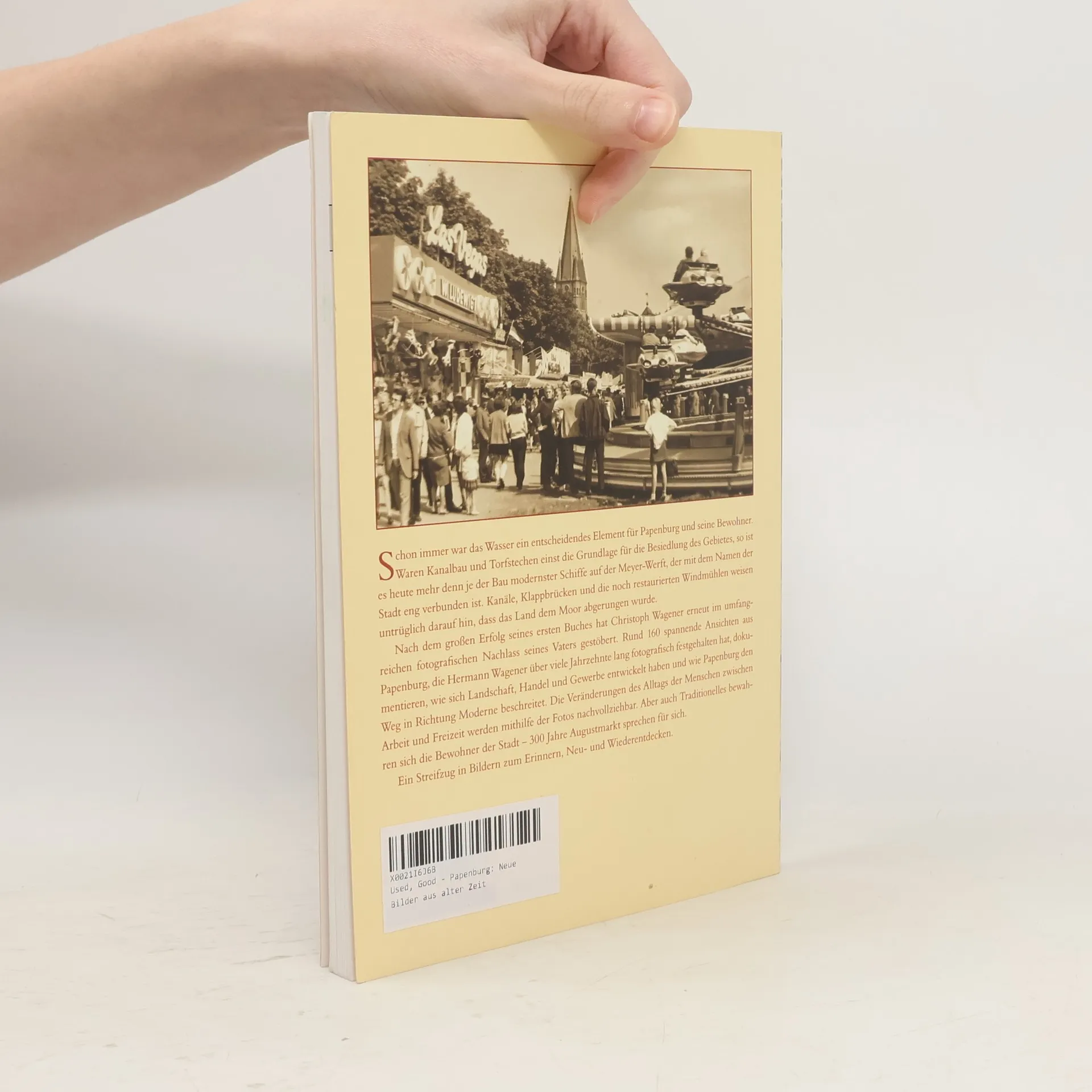 Die rund 160 Fotografien von Hermann Wagener bieten einen faszinierenden Einblick in die Entwicklung von Papenburg über viele Jahrzehnte. Sie dokumentieren den Wandel von Landschaft, Handel und Gewerbe und zeigen, wie die Stadt sich in Richtung Moderne verändert hat. Die Bilder veranschaulichen die Veränderungen im Alltag der Menschen zwischen Arbeit und Freizeit und laden dazu ein, Erinnerungen aufzufrischen sowie Neues und Vergessenes wiederzuentdecken.