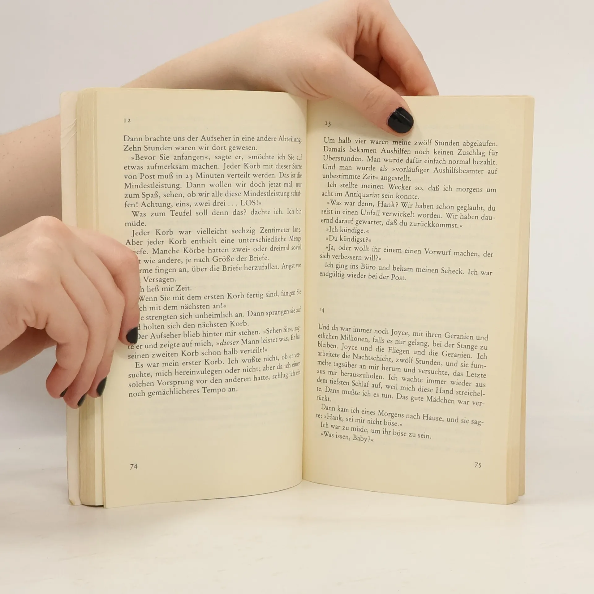 »Das gesamte Personal der Post muss in seiner völligen Hingabe an das Interesse der Öffentlichkeit immer standhaft und rechtschaffen bleiben. Vom Personal der Post wird erwartet, dass es nach den höchsten sittlichen Grundsätzen handelt, die Gesetze der Vereinigten Staaten achtet und sich im Übrigen an die Vorschriften und Richtlinien der Postverwaltung hält.« Der Briefträger Henry Chinaski alias Charles Bukowski bleibt unsittlich: Er legt sich mit seinem Vorgesetzten an, säuft, wettet und versucht erfolglos, eine dauerhafte sexuelle Beziehung aufzubauen. Schließlich quittiert er den Dienst, um einen Roman zu schreiben.