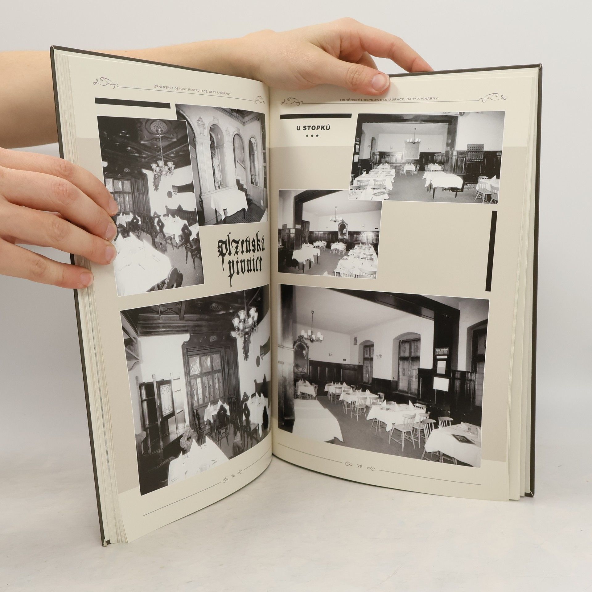 Kniha seznamuje s vývojem pohostinství v Brně, představuje dobové dokumenty související s touto živnosti jako jsou historicke účtenky, sklepní knihy, povolenky k hudbě a tanci a podobně a mapuje podniky v ulici Česká (U Polenků, Jonákova plzeňská pivnice, Stopkova plzeňská pivnice, Sputnik, Bolero, U Formana, Kavárna na České, Stopkova pivnice) a Husova (U Spurných, Velkopavlovická vinárna, Besední dům, Hansen).