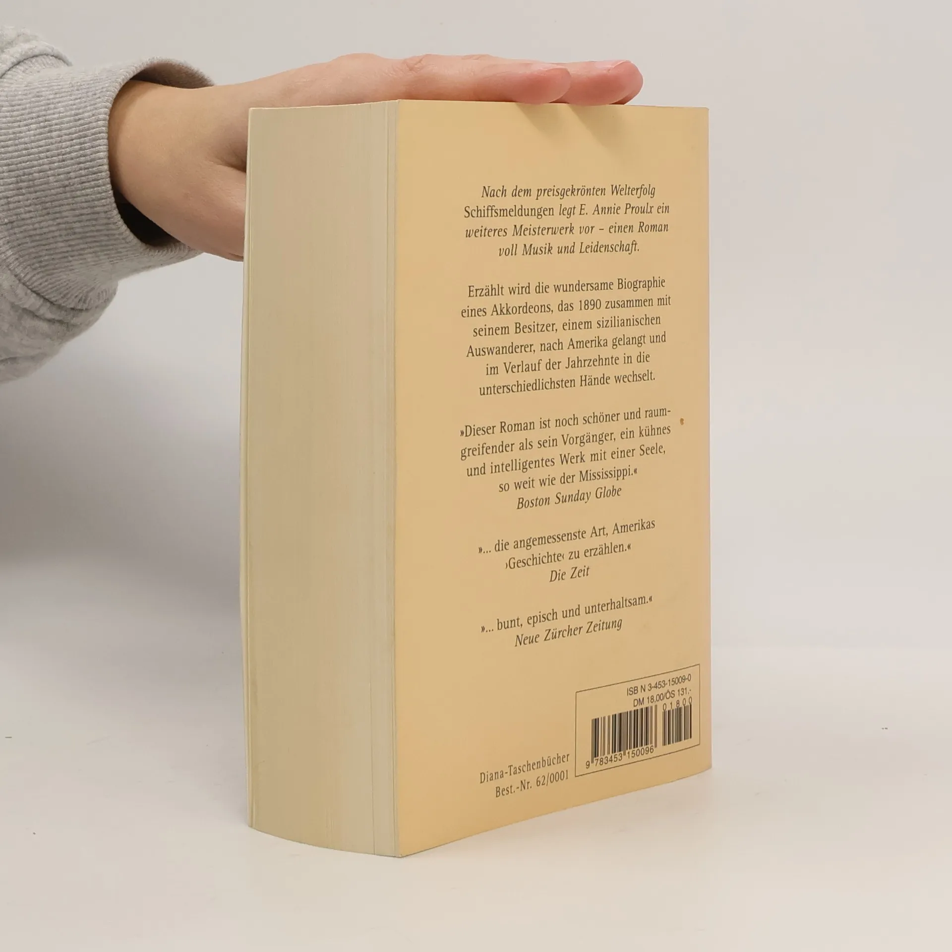 Die Odysse eines Akkordeons durch 100 Jahre amerikanische Geschichte. Ein grünes Akkordeon, 1890 in Sizilien gefertigt, gelangt mit seinem ersten Besitzer nach Amerika. Fast 100 Jahre lang erlebt es eine Odyssee durch den Kontinent, wird gestohlen, verkauft, verpfändet und verschenkt und begleitet die Nachfahren verschiedener Einwanderersippen auf ihrer Suche nach einem besseren Leben. Der Roman, voll Musik und Leidenschaft, voll Schmerz und Gewalt, erzählt von der Geschichte Amerikas und vom Schicksal der Menschen, die es schufen.