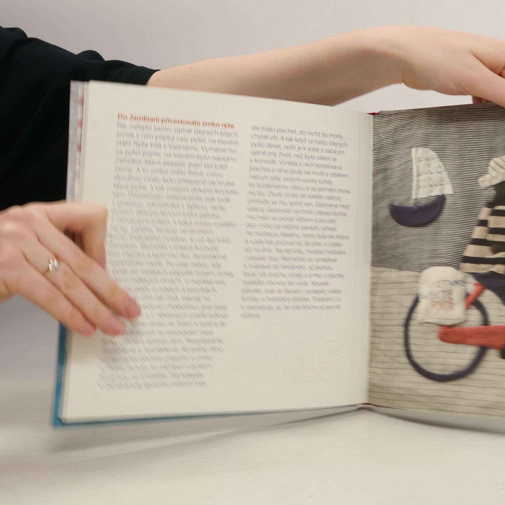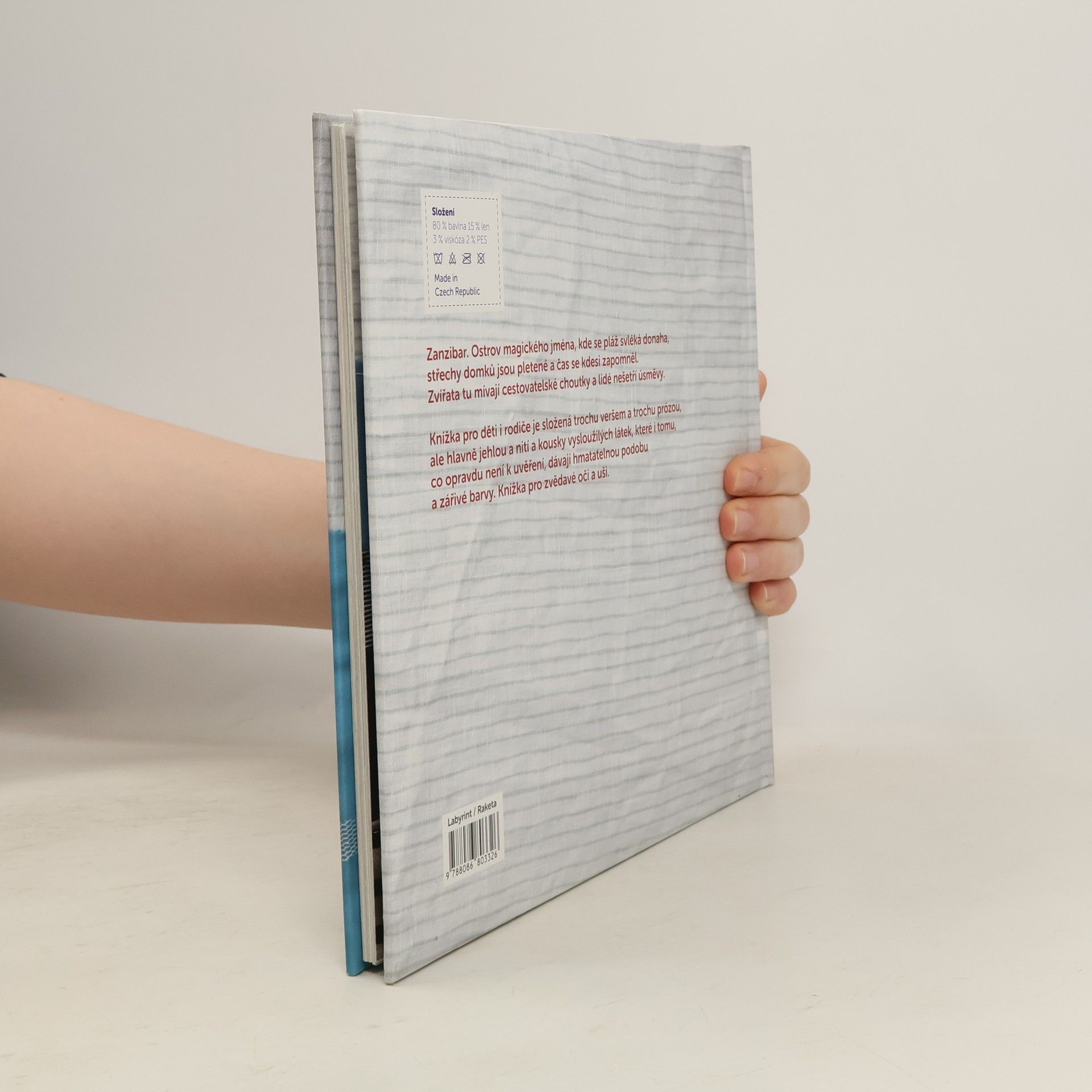 Zanzibar. Ostrov magického jména, kde se pláž svléká donaha, střechy domků jsou pletené, a prádlo s větrem hrají blues. Zvířata tu mívají cestovatelské choutky a lidé nešetří úsměvy. Knížka pro děti i rodiče je složená trochu veršem a trochu prózou, ale hlavně jehlou a nití a kousky vysloužilých látek, které i tomu, co opravdu není k uvěření, dávají hmatatelnou podobu a zářivé barvy. Plastické obrázky spolu s dvanácti veršovanými a pěti prozaickými texty hravě a s humorem provedou malé cestovatele životem ostrovanů i zvířat z ospalé vesničky jménem Jambiani, kde i nejvšednější věci jsou velmi neobyčejné. Knížka pro zvědavé oči a uši.