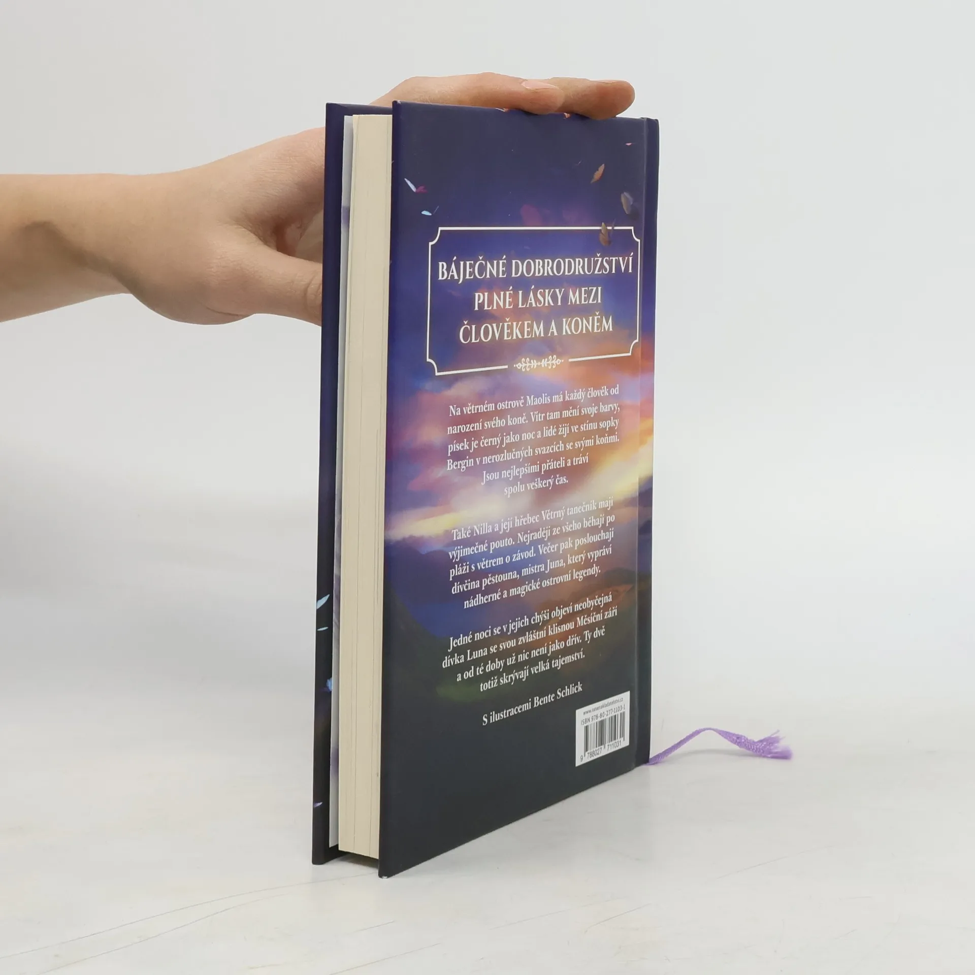 Na větrném ostrově Maolis má každý člověk už od narození svého koně. Vítr tam mění barvy, písek je černý jako noc a lidé žijí ve stínu sopky Bergin v nerozlučných svazcích se svými zvířaty. Jsou nejlepšími přáteli, tráví spolu veškerý čas a neexistuje naprosto nic, co by je mohlo rozdělit.Také Nilla a její hřebec Větrný tanečník mají neobyčejné pouto. Nejraději ze všeho spolu prostě jenom běhají po pláži s větrem o závod. Večer pak poslouchají dívčina pěstouna, mistra Juna, který vypráví nádherné a magické ostrovní legendy.Jedné noci se však v jejich chýši objeví neobyčejná dívka Luna se svou zvláštní klisnou Měsíční září a od té doby už nic není jako dřív. Ty dvě totiž skrývají velká tajemství.Vydejte se s našimi hrdiny na báječné dobrodružství plné větru, magie a lásky mezi člověkem a koněm, kterou nemůže nic zničit.