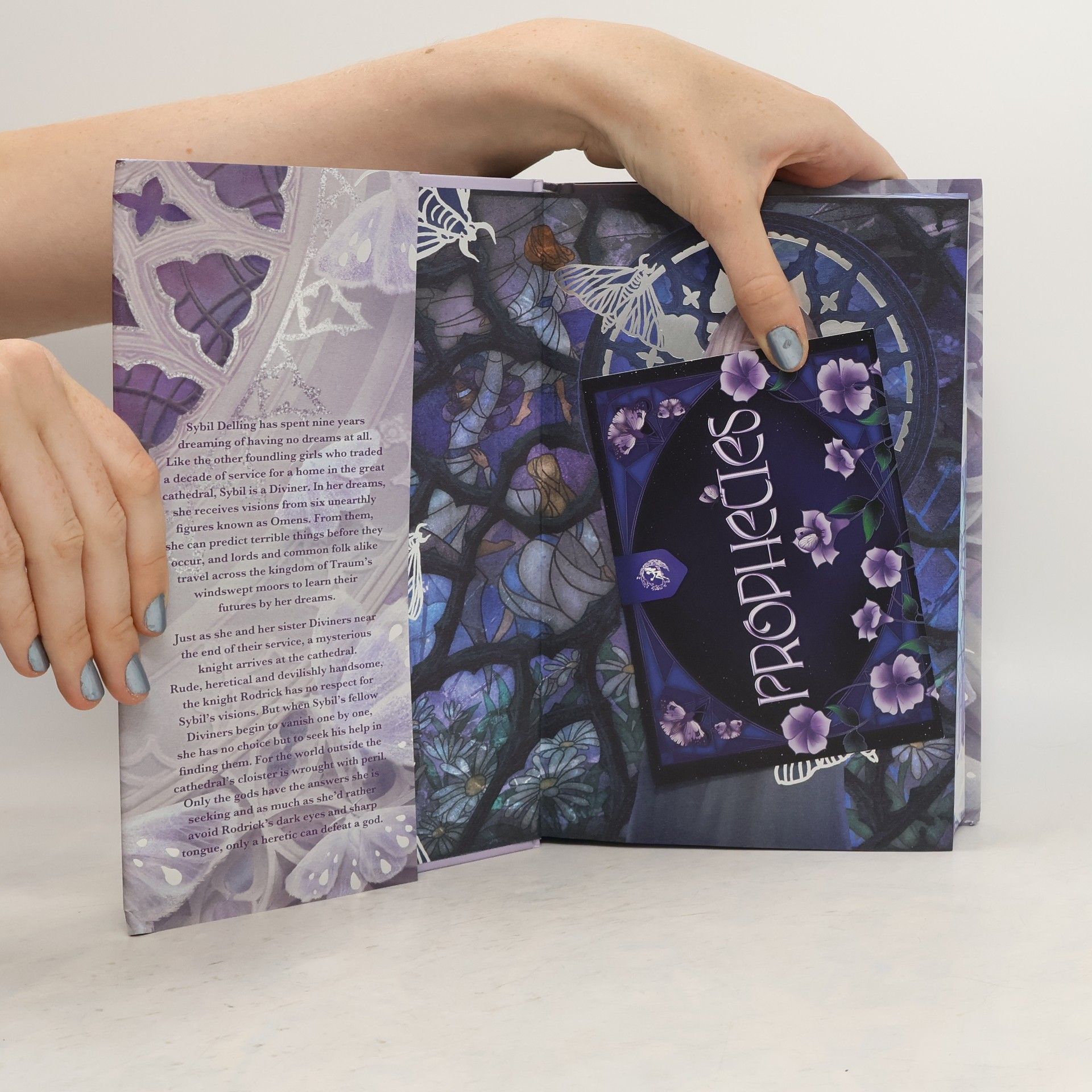 Sybil Delling has spent nine years dreaming of having no dreams at all. Like the other foundling girls who traded a decade of service for a home in the great cathedral, Sybil is a Diviner. In her dreams she receives visions from six unearthly figures known as Omens. From them, she can predict terrible things before they occur, and lords and common folk alike travel across the kingdom of Traum's windswept moors to learn their futures by her dreams.Just as she and her sister Diviners near the end of their service, a mysterious knight arrives at the cathedral. Rude, heretical, and devilishly handsome, the knight Rodrick has no respect for Sybil's visions. But when Sybil's fellow Diviners begin to vanish one by one, she has no choice but to seek his help in finding them. For the world outside the cathedral's cloister is wrought with peril. Only the gods have the answers she is seeking, and as much as she'd rather avoid Rodrick's dark eyes and sharp tongue, only a heretic can defeat a god.