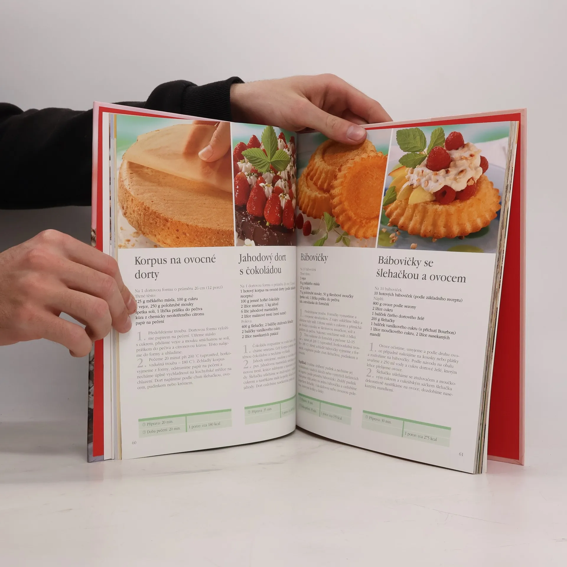 Recepty na přípravu šlehačkových, ovocných, čokoládových a krémových dortů doplňují typy a rady na přípravu, ukázky zdobení.