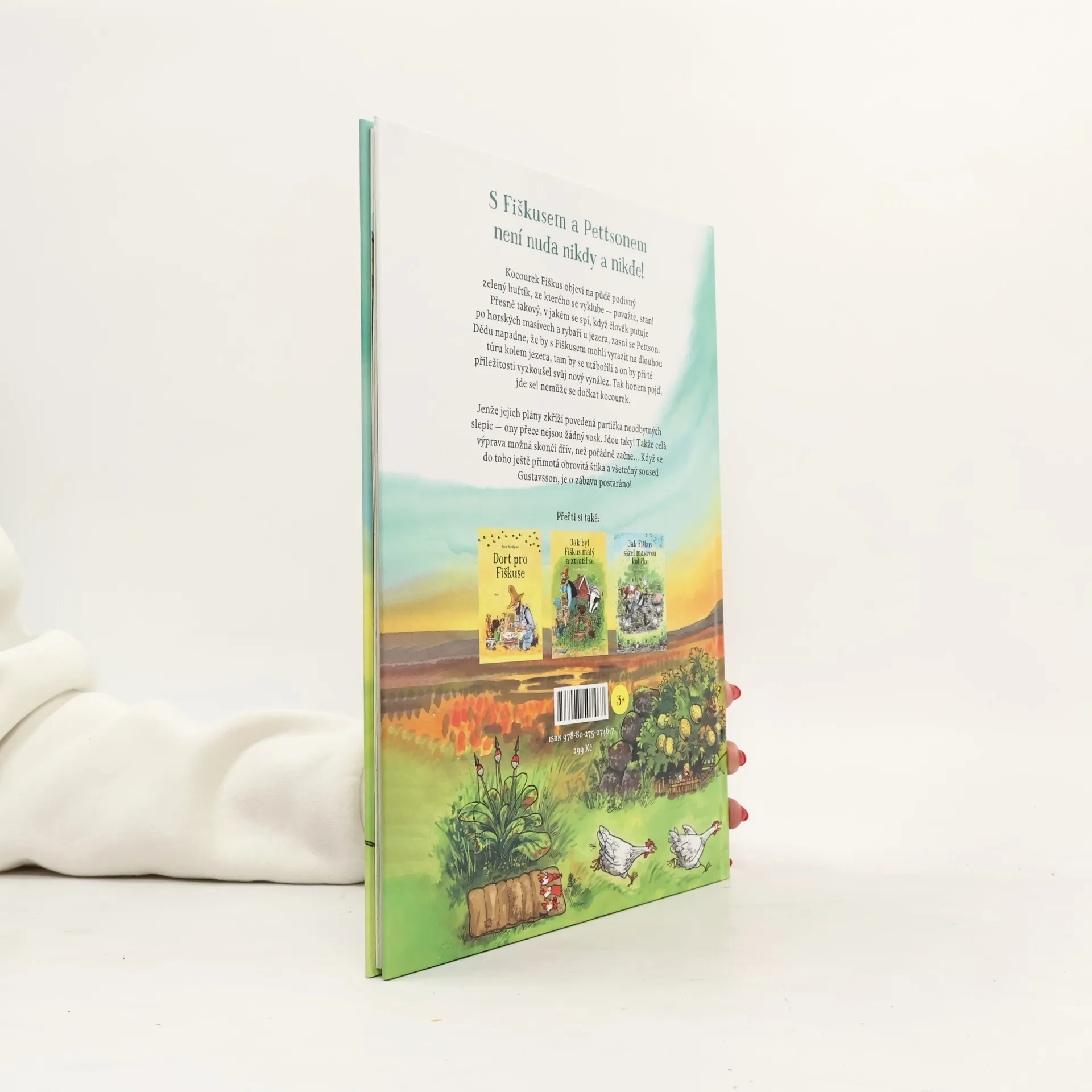 Voňavé dálky a romantika pod stanem v podání Fiškuse a Pettsona! Kocourek Fiškus objeví na půdě podivný buřtík, ze kterého se vyklube — považte — stan! Přesně takový, v jakém se spí, když člověk putuje po horských masivech a rybaří u jezera, zasní se Pettson. Dědu napadne, že by s kocourem mohli vyrazit na dlouhou túru kolem jezera, tam by se utábořili a on by při té příležitosti vyzkoušel svůj nový vynález. „Tak honem pojď, jde se!“ nemůže se dočkat kocourek. Jenže jejich plány zkříží povedená partička neodbytných slepic — ony přece nejsou žádný vosk. Jdou taky! Takže celá výprava možná skončí dřív, než pořádně začne… A když se do toho ještě přimotá obrovská štika a všetečný soused Gustavsson, je o zábavu postaráno!