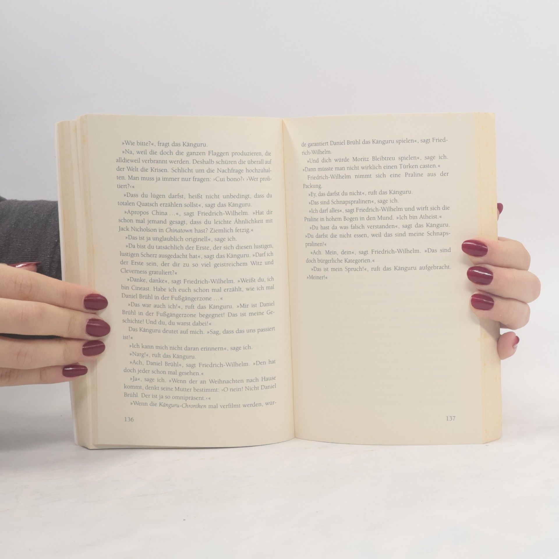 Sie sind wieder da – das kommunistische Känguru und der stoische Kleinkünstler! Auf der Jagd nach dem höchstverdächtigen Pinguin rasen sie durch die ganze Welt. Spektakuläre Enthüllungen! Skandale! Intrigen! Ein Mord, für den sich niemand interessiert! Eine Verschwörung auf niedrigster Ebene! Ein völlig abstruser Weltbeherrschungsplan! Mit Spaß, Spannung und Schnapspralinen ...