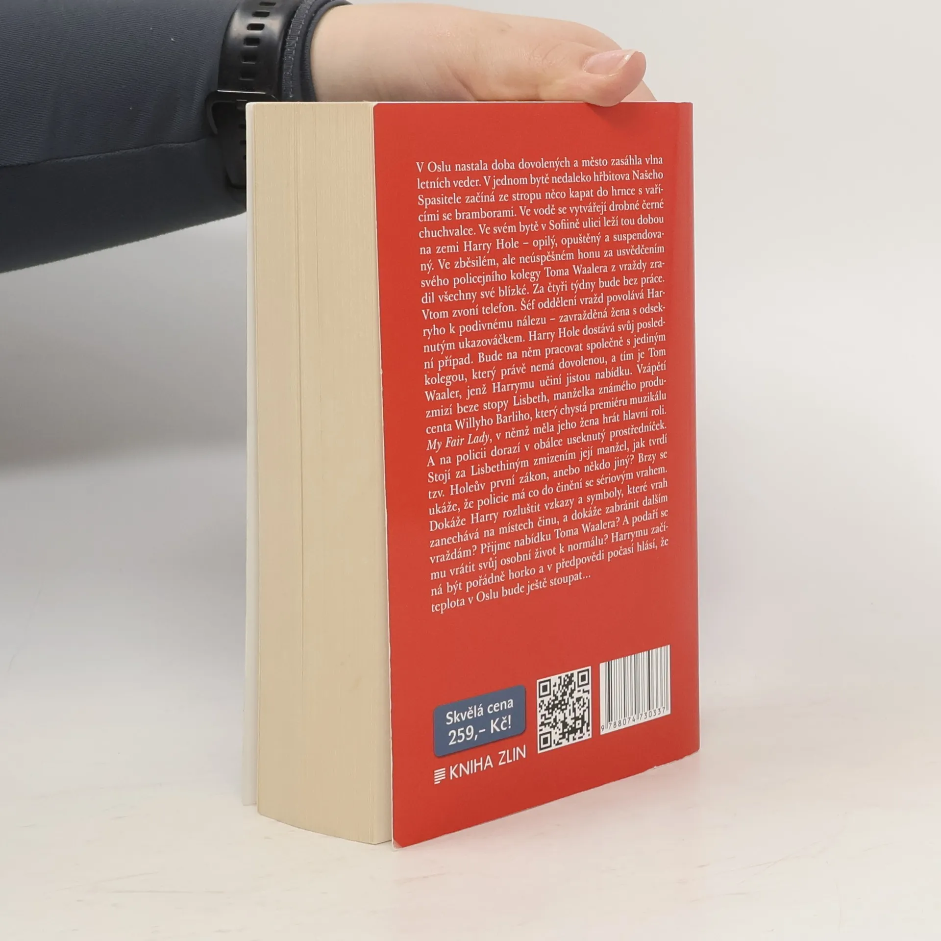 V Oslu začíná období prázdnin a dovolených a město zasáhla vlna letních veder. V jednom bytě nedaleko hřbitova Našeho Spasitele začíná ze stropu něco kapat do hrnce s vařícími se bramborami. Ve vodě se tvoří drobné černé chuchvalce. Ve svém bytě v Sofiině ulici leží tou dobou na zemi Harry Hole – opilý, opuštěný a suspendovaný. Ve zběsilém, ale neúspěšném honu za usvědčením svého policejního kolegy Toma Waalera z vraždy zradil všechny své blízké. Za čtyři týdny bude bez práce. Vtom zvoní telefon. Šéf oddělení vražd povolává Harryho k podivnému nálezu – zavražděná žena s odseknutým prstem. Harry Hole dostává svůj poslední případ. Bude na něm pracovat společně s jediným kolegou, který právě nemá dovolenou, s Tomem Waalerem, jenž Harrymu učiní jistou nabídku. Vzápětí zmizí beze stopy Lisbeth, manželka známého producenta Willyho Barliho, který chystá premiéru muzikálu My Fair Lady, v němž měla jeho žena hrát hlavní roli. A na policii dorazí v obálce useknutý prstem. Stojí za Lisbethiným zmizením její manžel, jak tvrdí tzv. Holeův první zákon, anebo někdo jiný? Brzy se ukáže, že policie má co do činění se sériovým vrahem. Dokáže Harry rozluštit vzkazy a symboly, které vrah zanechává na místech činu, a dokáže zabránit dalším vraždám? Přijme nabídku Toma Waalera? A podaří se mu vrátit svůj osobní život k normálu? Harrymu začíná být pořádně horko. 2. vydání