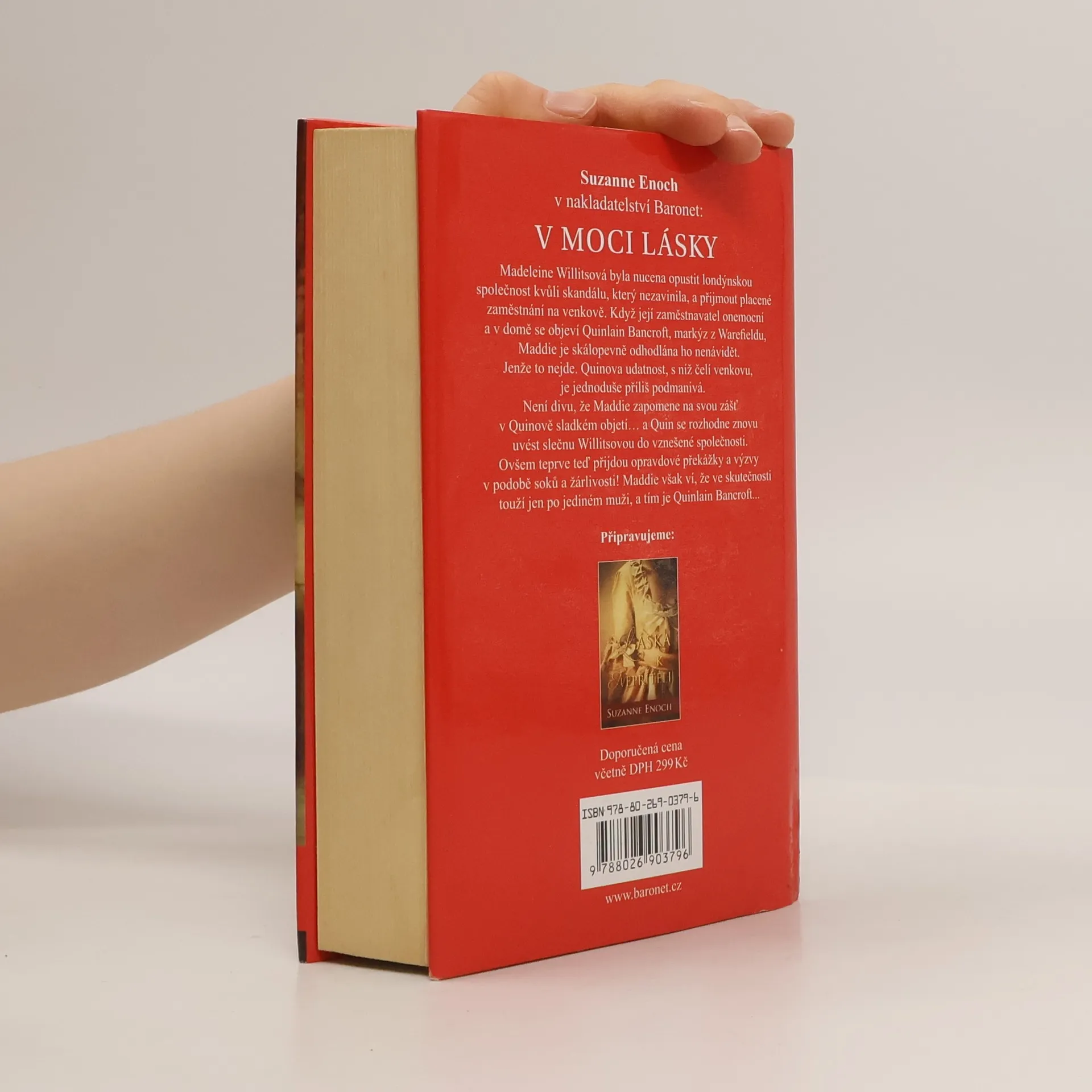Madeleine Willitsová byla nucena opustit londýnskou společnost kvůli skandálu, který nezavinila, a přijmout placené zaměstnání na venkově. Když její zaměstnavatel onemocní a v domě se objeví Quinlain Bancrof, markýz z Warfieldu, Maddie je skálopevně odhodlána ho nenávidět. Jenže to nejde. Quinlainova udatnost, s níž čelí venkovu, je jednoduše příliš podmanivá. Není divu, že Maddie zapomene na svou zášť v Quinlainově sladkém objetí… a Quinlain se rozhodne znovu uvést slečnu Willitsovou do vznešené společnosti. Jenomže teprve teď přijdou opravdové překážky a výzvy v podobě soků a žárlivosti! Maddie však ví, že ve skutečnosti touží jen po jediném muži...