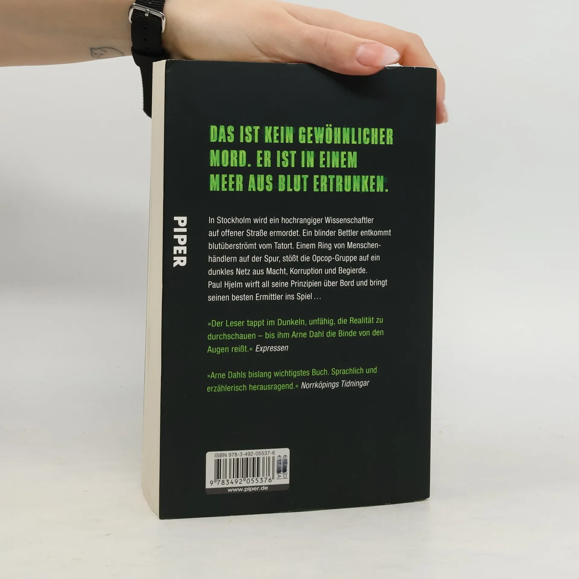 Die Hitze des Sommers lähmt ganz Europa. Und während das Opcop-Team die Hintermänner eines internationalen Menschenhandelsrings observiert, begegnet Paul Hjelm bei einem Galadiner der attraktiven Französin Marianne Barrière. Sie bittet ihn um Hilfe in einem blutigen Kriminalfall von europäischer Tragweite: Einem Professor wird auf offener Straße die Kehle durchgeschnitten, und ein blinder Bettler flieht mit den sensiblen Daten, die sich auf dem Smartphone des Professors befinden. Paul Hjelm sieht keine andere Möglichkeit, als all seine Prinzipien über Bord zu werfen. Und deshalb kann ihm nur sein alter Freund Gunnar Nyberg, der sich längst auf eine griechische Insel zurückgezogen hat, bei seinem Plan behilflich sein ... »Ein wichtiger, interessanter, clever konstruierter Roman, der allen gefallen wird, die sich für intelligente Spannung begeistern.« Svenska Dagbladet