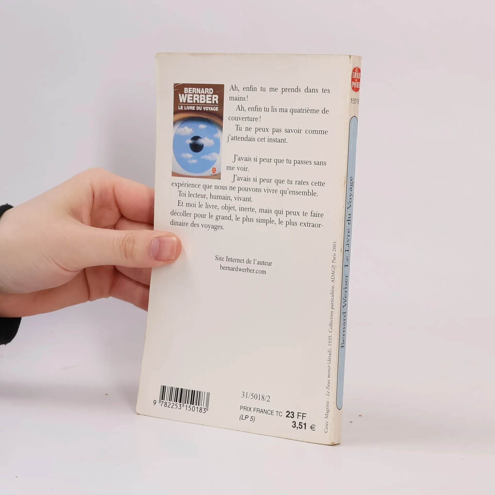 Ah, enfin tu me prends dans tes mains !Ah, enfin tu lis ma quatrième de couverture !Tu ne peux pas savoir comme j'attendais cet instant.J'avais si peur que tu passes sans me voir.J'avais si peur que tu rates cette expérience que nous ne pouvons vivre qu'ensemble.Toi lecteur, humain, vivant.Et moi le livre, objet, inerte, mais qui peux te faire décoller pour le grand, le plus simple, le plus extraordinaire des voyages.
