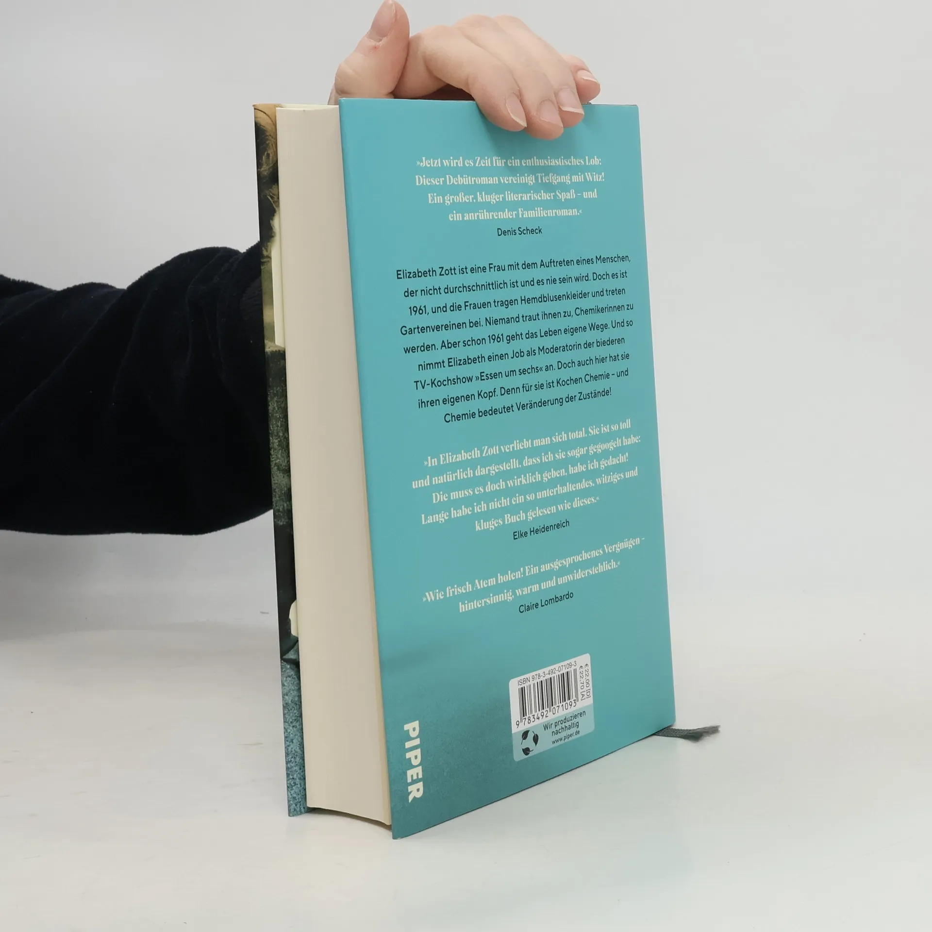 Etzt wird es Zeit für ein enthusiastisches Lob: Dieser Debütroman vereinigt Tiefgang mit Witz! Ein großer, kluger literarischer Spaß - und ein anrührender Familienroman.« Denis ScheckElizabeth Zott ist eine Frau mit dem Auftreten eines Menschen, der nicht durchschnittlich ist und es nie sein wird. Doch es ist 1961, und die Frauen tragen Hemdblusenkleider und treten Gartenvereinen bei. Niemand traut ihnen zu, Chemikerinnen zu werden. Aber schon 1961 geht das Leben eigene Wege. Und so nimmt Elizabeth einen Job als Moderatorin der biederen TV-Kochshow »Essen um sechs« an. Doch auch hier hat sie ihren eigenen Kopf. Denn für sie ist Kochen Chemie - und Chemie bedeutet Veränderung der Zustände!»In Elizabeth Zott verliebt man sich total. Sie ist so toll und natürlich dargestellt, dass ich sie sogar gegoogelt habe: Die muss es doch wirklich geben, habe ich gedacht! Lange habe ich nicht ein so unterhaltendes, witziges und kluges Buch gelesen wie dieses.« Elke Heidenreich»Wie frisch Atem holen! Ein ausgesprochenes Vergnügen - hintersinnig, warm und unwiderstehlich [Buchzentrum]