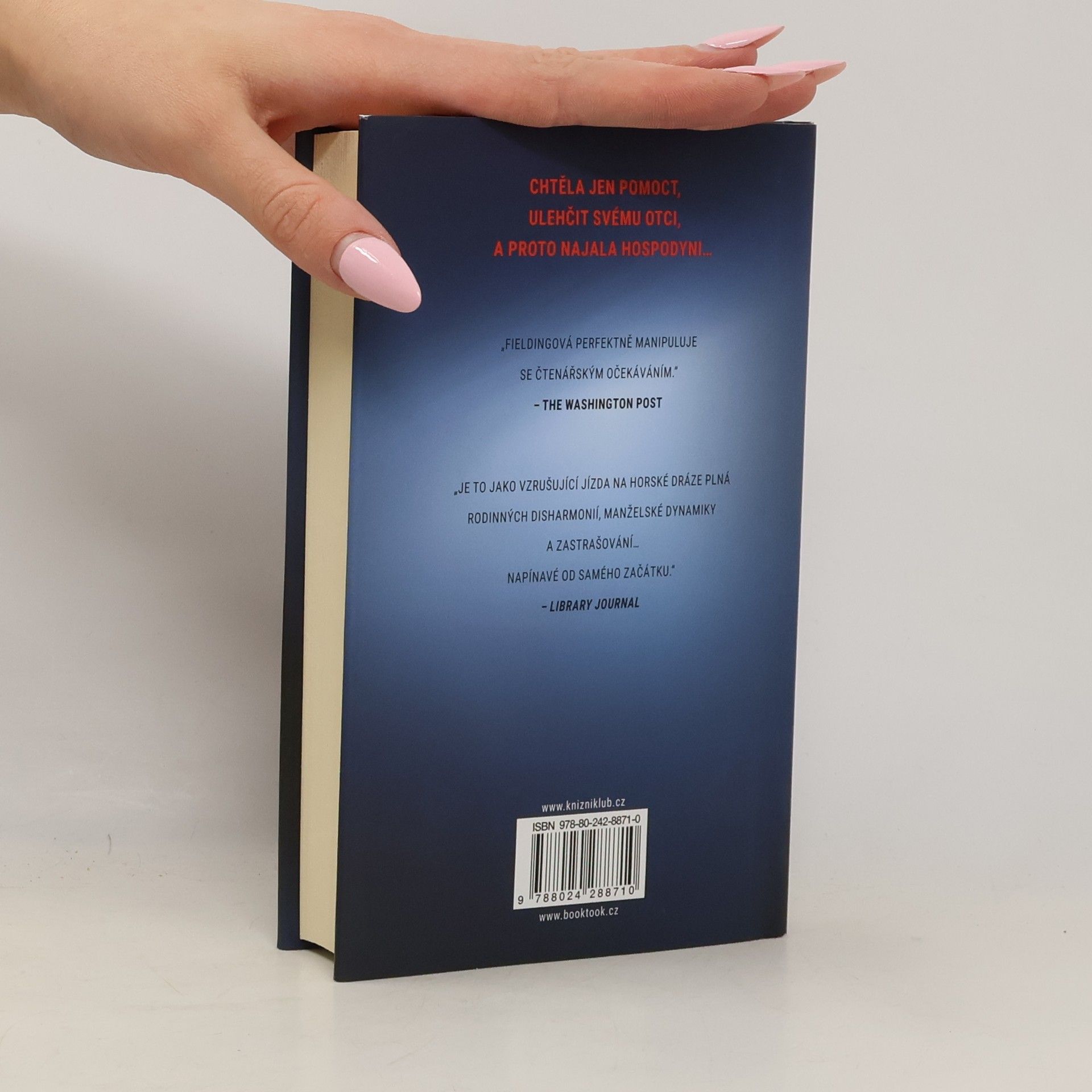 Jodi Bishopová je úspěšnou realitní makléřkou a živitelkou rodiny. Harrison – její manžel – na ni kvůli tomu žárlí. Kdysi měl své velké sny, ale teď je jen průměrným spisovatelem. Jodi už nebaví neustálá snaha sladit chod rodiny, práci a potřeby vlastních rodičů. Její matka má totiž Parkinsonovu chorobu a zatím se o ni zvládá starat Vic – Jodiin otec. Taky však není nejmladší a neustálá péče jej vyčerpává. Uvítal by pomoc. Jodi se proto rozhodne najmout pro své rodiče hospodyni. Je to ale správné rozhodnutí? Kdo je vlastně ta žena, která najednou nosí matčiny šperky? O co jí jde? A jak daleko je kvůli tomu ochotna zajít?