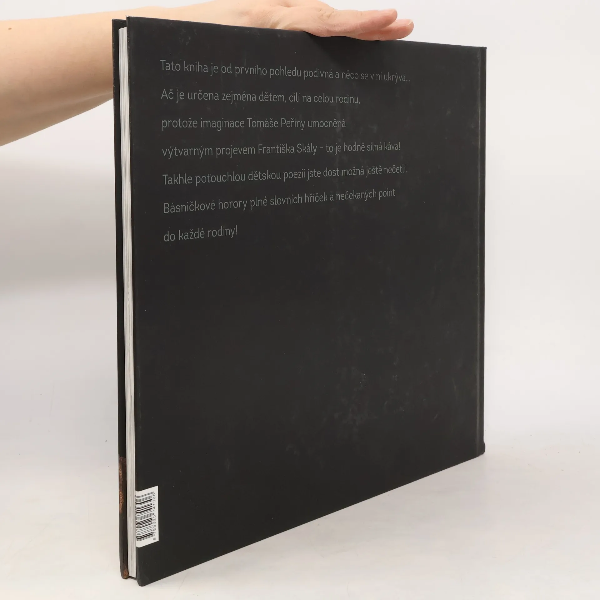 Tato kniha je od prvního pohledu podivná a něco se v ní ukrývá… Ač je určena dětem, má šanci stát se zásadním knižním titulem pro celou rodinu, protože imaginace Tomáše Peřiny umocněná výtvarným projevem Františka Skály – to je hodně silná káva! Takhle poťouchlou dětskou poezii jste dost možná ještě nečetli a zcela určitě zase dlouho číst nebudete.