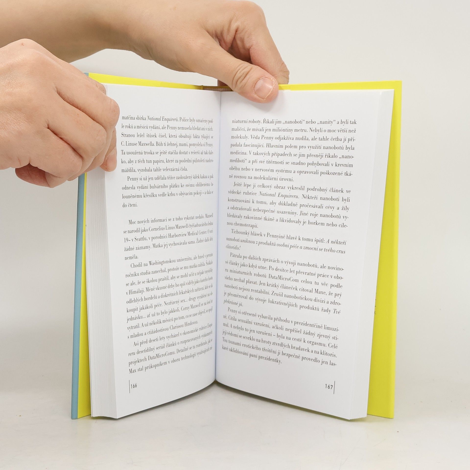 Penny Harriganová je obyčejná holka z amerického zapadákova, která sice může říct, že má flek v advokátní firmě na Manhattanu, nicméně hlavní náplní její práce je nosit kafe a rovnat židle. Nikdy by si ani ve snu nepředstavovala, že jednou večer bude sedět v superluxusní restauraci s multimiliardářem Linusem Maxwellem. Ale nejen to. Vzápětí se s ním ocitá v Paříži, kde ji zasvětí do tajných zákoutí ženské smyslnosti, předvede jí – za pomoci různých intimních pomůcek – sedmé nebe rozkoše… Žena však záhy pochopí, že se stala testovacím objektem finální fáze nových erotických pomůcek, které mají změnit „ženské chápání světa“. A že před ní to v různé míře absolvovaly stovky a tisíce jiných. Intimní pomůcky pro něžné pohlaví jsou tak dokonalé, že se ženy už brzy obejdou bez mužů… A tohle se Penny pokusí zastavit. Sama proti Maxwellovi, sama proti celému světu, sama proti nanobotům proudících v krvi, které jí dokážou bez její vůle působit neuvěřitelnou rozkoš i trýznivou bolest.