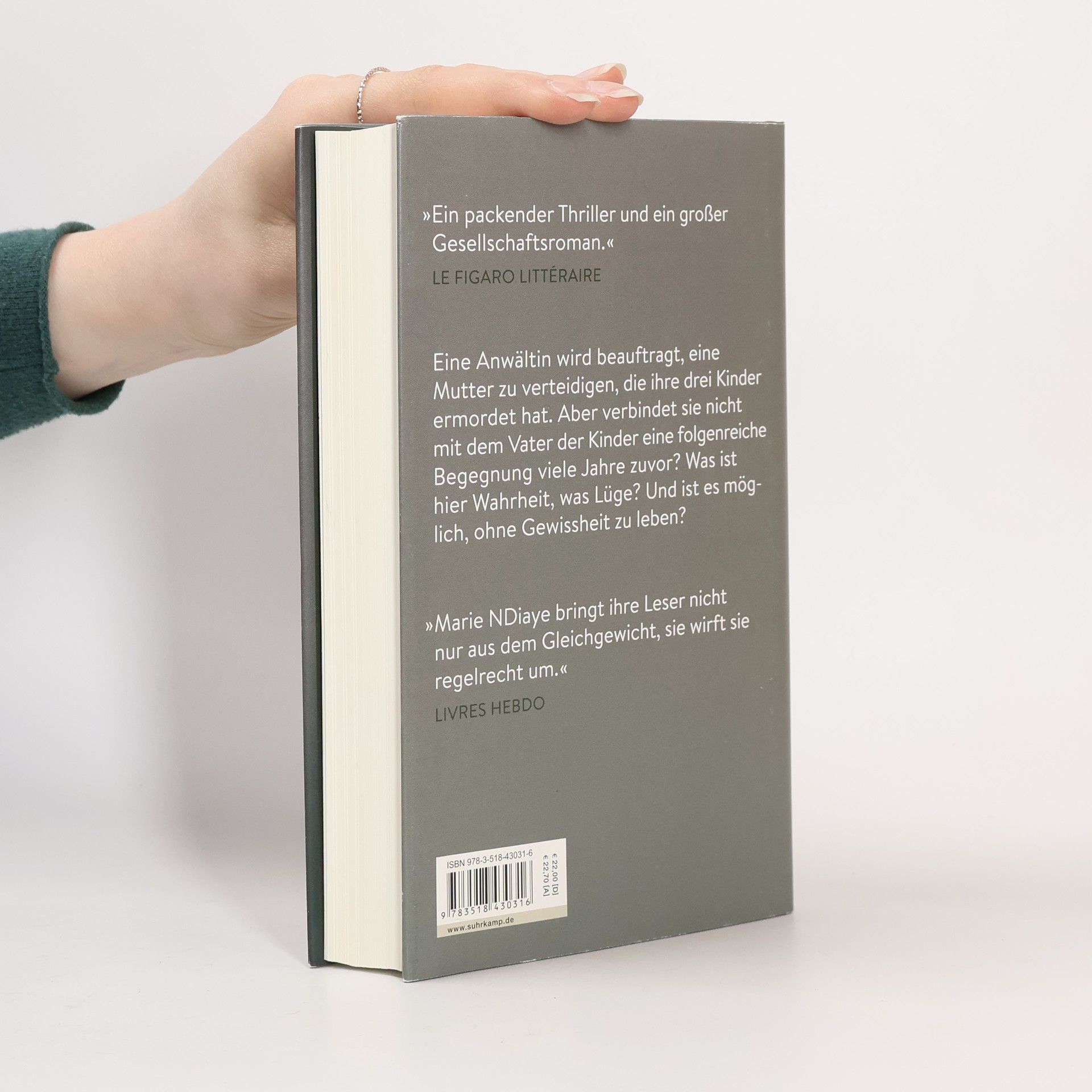 Maître Susane, 42, Anwältin in Bordeaux, wird von Gilles Principaux besucht, einem Mann, den sie aus ihrer Jugend zu kennen glaubt. Damals traf sie einen beeindruckenden Jungen aus reichem Elternhaus, der ihr Leben veränderte, doch die genauen Umstände sind vage. Hinweise ihres Vaters, dass der Junge ihr zu nahe gekommen sein könnte, weist sie empört zurück. Principaux bittet sie, die Verteidigung seiner Frau zu übernehmen, die ihre drei Kinder ermordet hat. Maître Susane nimmt den Fall an und gerät in einen Strudel aus Fragen und Zweifeln. Was ist mit der Mutter geschehen? Welche Rolle spielen ihre maurizischen Hausangestellten und deren Kinder? Wer ist Gilles Principaux wirklich? Und ist sie selbst die Person, die sie zu sein glaubt? Die Anwältin wird mit der dunklen Vergangenheit konfrontiert und muss zwischen Wahrheit und Lüge unterscheiden. Marie NDiayes aufwühlender Roman über eine Frau in einer Extremsituation ist ein literarisches Ereignis, das mit den Erwartungen und Ängsten der Leser spielt. Die Kritiken loben das Werk als packenden Thriller und bedeutenden Gesellschaftsroman, der die Widersprüche im Leben von Frauen thematisiert und die gesellschaftlichen Strömungen in Frankreich einfängt.