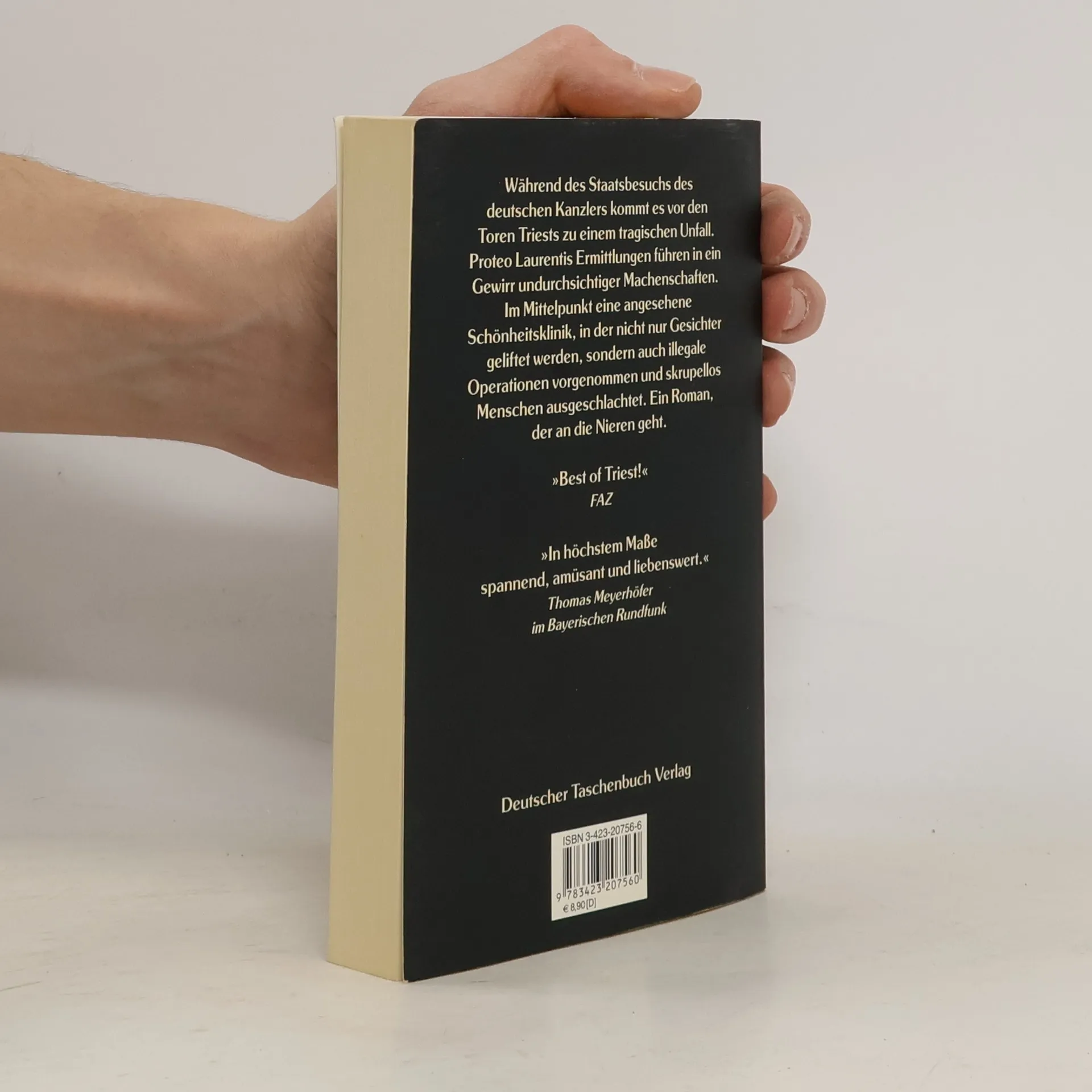 Kommissar Laurentis dritter Fall In einer exklusiven Beauty-Klinik vor den Toren Triests werden angeblich harmlose, in jedem Fall aber teure Schönheitsoperationen durchgeführt, von der Nase an abwärts. Auch Laura, die Frau von Commissario Proteo Laurenti, zeigt Interesse. Laurenti hat andere Sorgen: Während des Staatsbesuchs des deutschen Bundeskanzlers  kommt es zu einem tragischen Unfall. Die Limousine des Kanzlers überrollt einen nackten Mann. Laurenti muss ein Geflecht aus Protektion, Korruption, Denunziation, Mord und Totschlag entwirren. Alle Fäden scheinen in der Klinik auf dem Karst zusammenzulaufen …