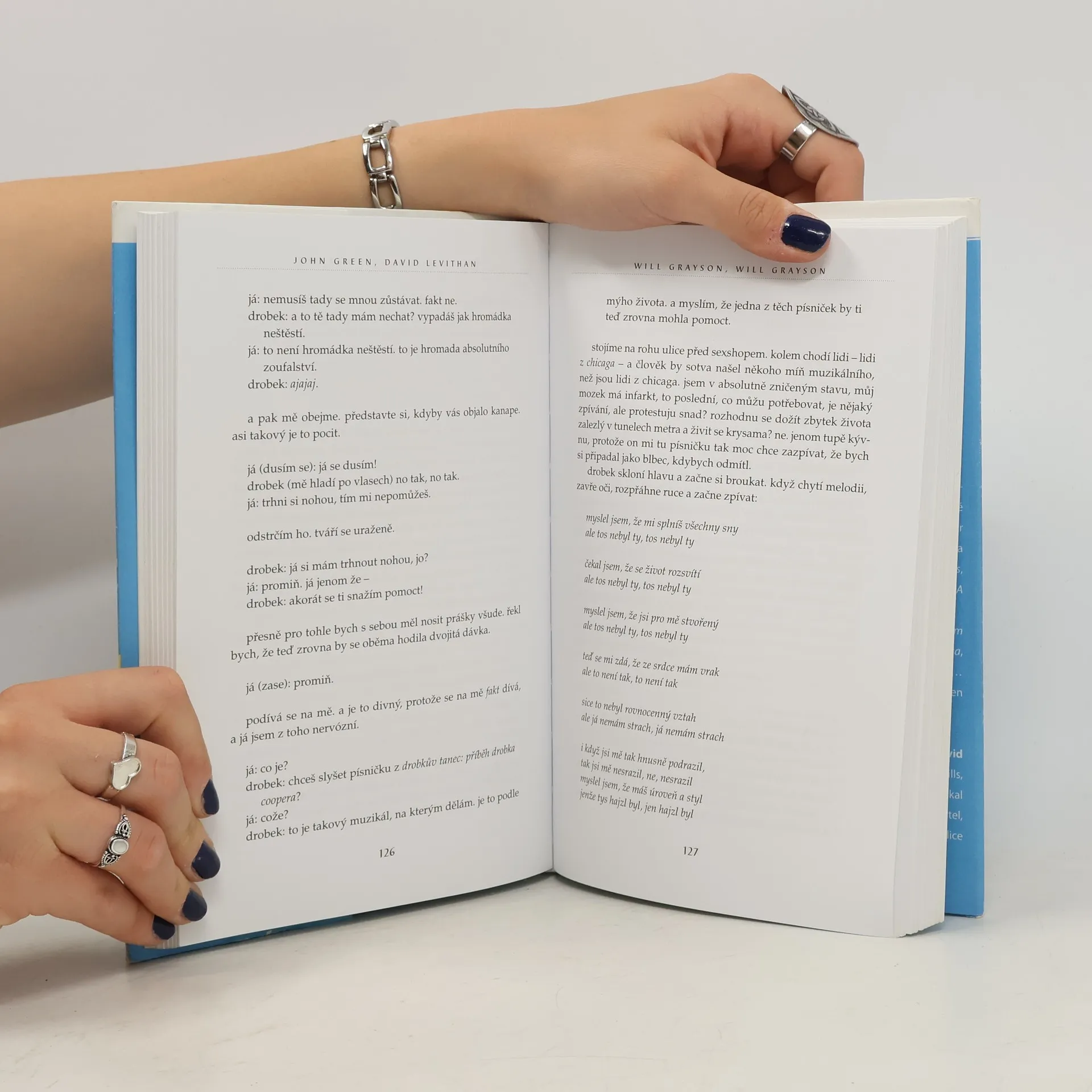 Will Grayson a Will Grayson jsou dva naprosto rozdílní kluci, kteří spolu (kromě jména) nemají vůbec nic společného. Dokonce se ani neznají. Pak se jednoho dne náhodou setkají... Chicago je dost velké město a dva středoškoláky z jeho opačných konců může dohromady svést leda náhoda. A aby se navíc ti dva jmenovali úplně stejně, totiž Will Grayson, musí ta náhoda být hodně veliká. Jenže opravdový spád věci naberou teprve tehdy, když se do všeho vloží ještě někdo třetí – kamarád jednoho z Willů zvaný Drobek, tornádo v lidské podobě. Drobek je střední útočník školního týmu amerického fotbalu, autor, skladatel, producent, režisér a hlavní hvězda nejlepšího muzikálu všech dob, a především věčně zamilovaný gay. A když ten se do něčeho pustí, můžete si být jistí, že při zdi se držet nebude… Oba Willy čeká řada příjemných i méně příjemných překvapení a postupně si budou muset znovu přebrat všechno, co si mysleli o sobě, o lásce i o přátelství.