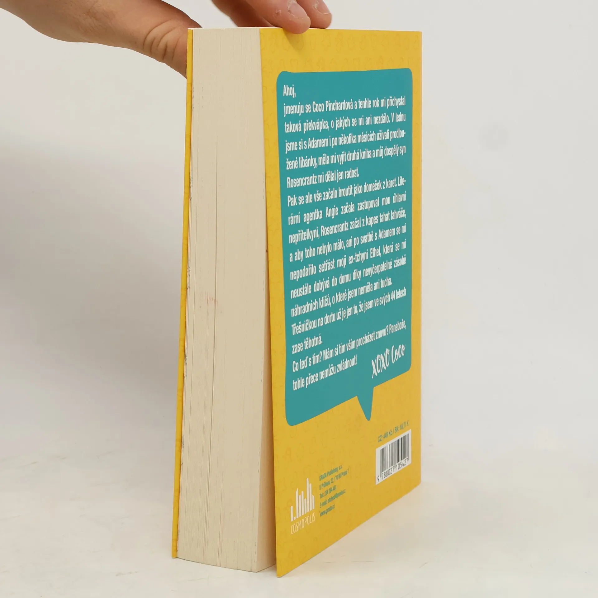 Coco Pinchardová se po hrozných útrapách a mimořádně klikaté cestě konečně znovu vdala za fešného Adama, vrátila se do svého starého domu, dopsala svou další knihu a srovnala si vztahy s rodinou i s přáteli. Vypadá to, že ji čeká fantastický rok. To by ale nebyla Coco, aby všechno nezamotala a všechno se jí nezačalo hroutit jako domeček z karet!Literární agentka Angie začala zastupovat její úhlavní nepřítelkyni, Rosencrantz začal pít, a aby toho nebylo málo, ani po svatbě s Adamem se Coco nepodařilo zbavit se ex-tchyně Ethel.A k tomu všemu ještě zjistí, že je ve svých 44 letech zase těhotná. Co teď s tím? Má si tím vším procházet znovu? Panebože, tohle přece nemůže zvládnout ani nezdolná Coco Pinchardová!