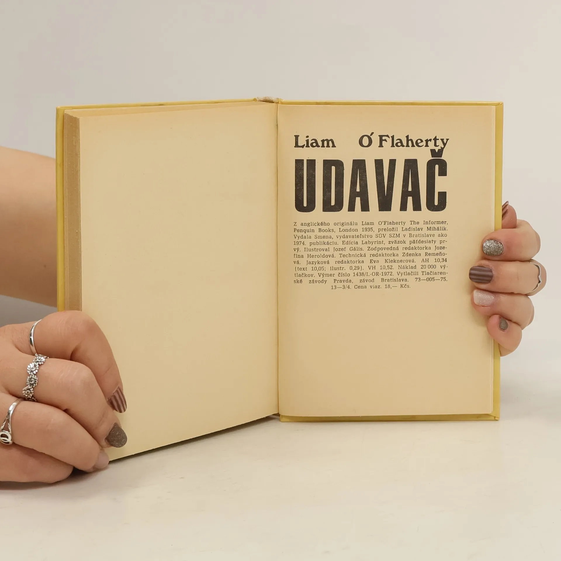 Skvelá detektívka. Tri sekundy vládlo v kuchyni mŕtve ticho, potom bolo počuť, ako sa všetci chvejú. Všetkých sa zmocnilo strašné podozrenie : niekto udal Francisca Josepha McPhillipa. Udavač! Hrôzu tohto slova si vládze uvedomiť iba Ír. V tom okamihu začali prítomní podozrievať druh druha...tvrdá väzba, malý formát