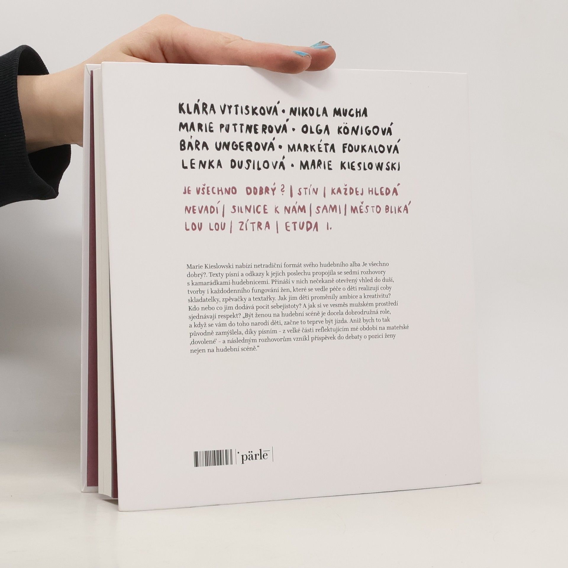 Sedm žen, sedm hudebnic, sedm různých cest k propojení mateřství a tvorby.Kniha Marie Kieslowski obsahuje texty písní, odkazy k poslechu alba Je všechno dobrý? a sedm rozhovorů s dalšími hudebnicemi, jako je Lenka Dusilová, Klára Vytisková aj.Přináší v nich nečekaně otevřený vhled do duší, tvorby i každodenního fungování žen, které se vedle péče o děti realizují coby skladatelky, zpěvačky a textařky.Jak jim děti proměnily ambice a kreativitu?Kdo nebo co jim dodává pocit sebejistoty?A jak si ve vesměs mužském prostředí sjednávají respekt?Autorka říká: „Být ženou na hudební scéně je docela dobrodružná role, a když se vám do toho narodí děti, začne to teprve být jízda. Aniž bych to tak původně zamýšlela, díky písním – z velké části reflektujícím mé období na mateřské "dovolené" – a následným rozhovorům vznikl příspěvek do debaty o pozici ženy nejen na hudební scéně.“