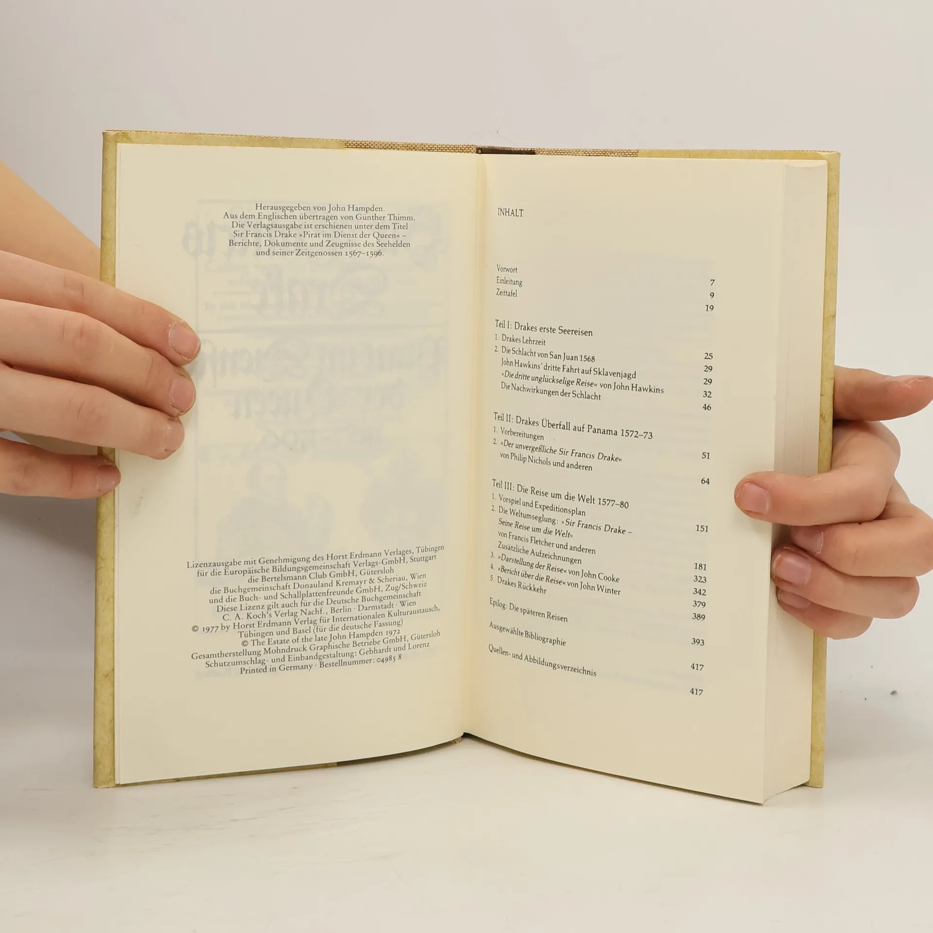 "Auf allen Gebieten der Seefahrt war er bei weitem geschickter als je einer vor ihm.(...). Sein Name versetzte Franzosen, Spanier, Portugiesen und Indianer in Schrecken." Er war der berühmteste Seefahrer des elisabethanischen Zeitalters und ein erbitterter Gegner Spaniens. Doch was ist wahr und was Legende an seiner Karriere, seinen Raubzügen und Kämpfen gegen die Spanier? Die in diesem Band abgedruckten Augenzeugenberichte lassen den bewunderten Zeitgenossen Shakespeares und seine waghalsigen Abenteuer lebendig werden. Kaum eine Figur in der Geschichte der Seefahrt ist so faszinierend wie Sir Francis Drake. Der englische Pirat und Erdumsegler wurde bereits zu Lebzeiten als Volksheld gefeiert. In dieser Ausgabe werden seine Abenteuer erneut lebendig: die Schlacht von San Juan, die Sklavenjagd mit John Hawkins, der Überfall auf Panama und die Reise um die Welt von 1577-1580 mit der "Golden Hind" - der ersten britischen Weltumsegelung. Die Berichte stellen auch kritische Fragen. Es ist die Chronik eines abenteuerlichen Lebens in einem großen Jahrhundert. Deutlich wird, dass Drake nicht nur ein genialer Seefahrer und kühner Freibeuter war, sondern auch einen wesentlichen Beitrag zu den großen Entdeckungen seiner Zeit leistete. Für seine Verdienste wurde er am 04. April 1581 von Elisabeth I. zum Ritter geschlagen.