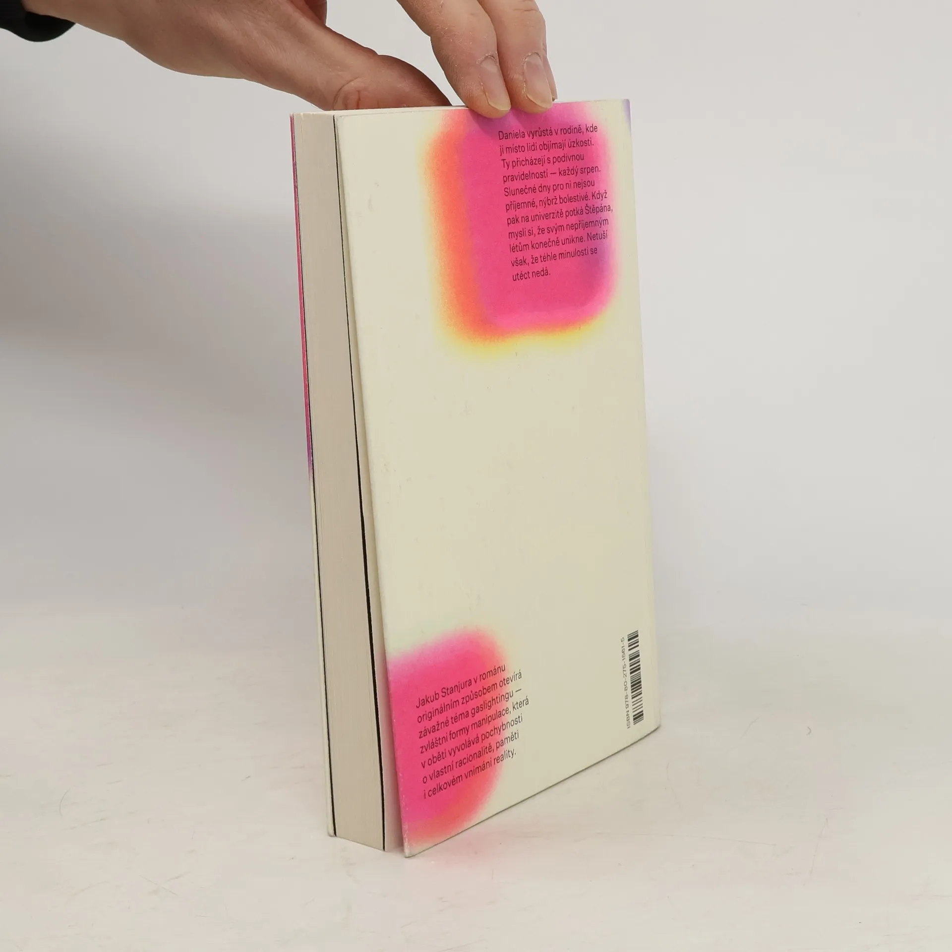 Kam až jsme schopni kvůli tomu druhému zajít? Daniela vyrůstá v rodině, kde ji místo lidí objímají úzkosti. Ty přicházejí s nevysvětlitelnou pravidelností — každý srpen. Slunečné dny pro ni nejsou příjemné, nýbrž bolestivé. Když pak na univerzitě potká Štěpána, myslí si, že svým nepříjemným létům konečně unikne. Netuší však, že téhle minulosti se utéct nedá.Jakub Stanjura v románu originálním způsobem otevírá závažné téma gaslightingu — zvláštní formy manipulace, při níž oběť zpochybňuje vlastní racionalitu, paměť i celkové vnímání reality.