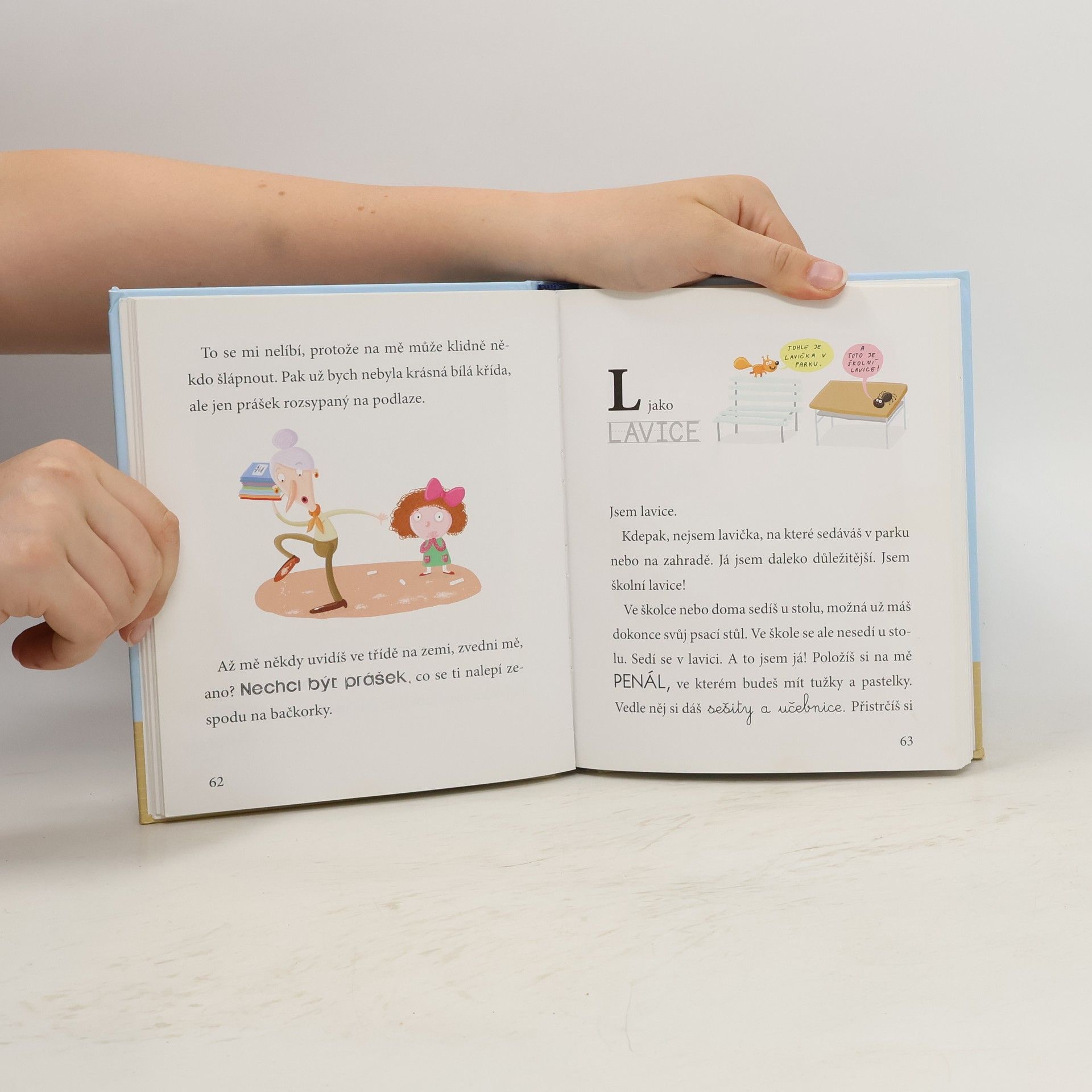 Máte doma předškoláka nebo prvňáčka? Kniha pomůže dětem nejen s abecedou, ale také jim představí nový svět školního prostředí. Představte si, že existuje na každé písmenko nějaký předmět nebo jev, se kterým se ve škole setkají poprvé. S touto knihou je nic nezaskočí! Nápadité a hravé ilustrace doplňují vtipné texty. Jedinečná obrázková knížka, která provede čerstvé školáky abecedou a zároveň školním prostředím.