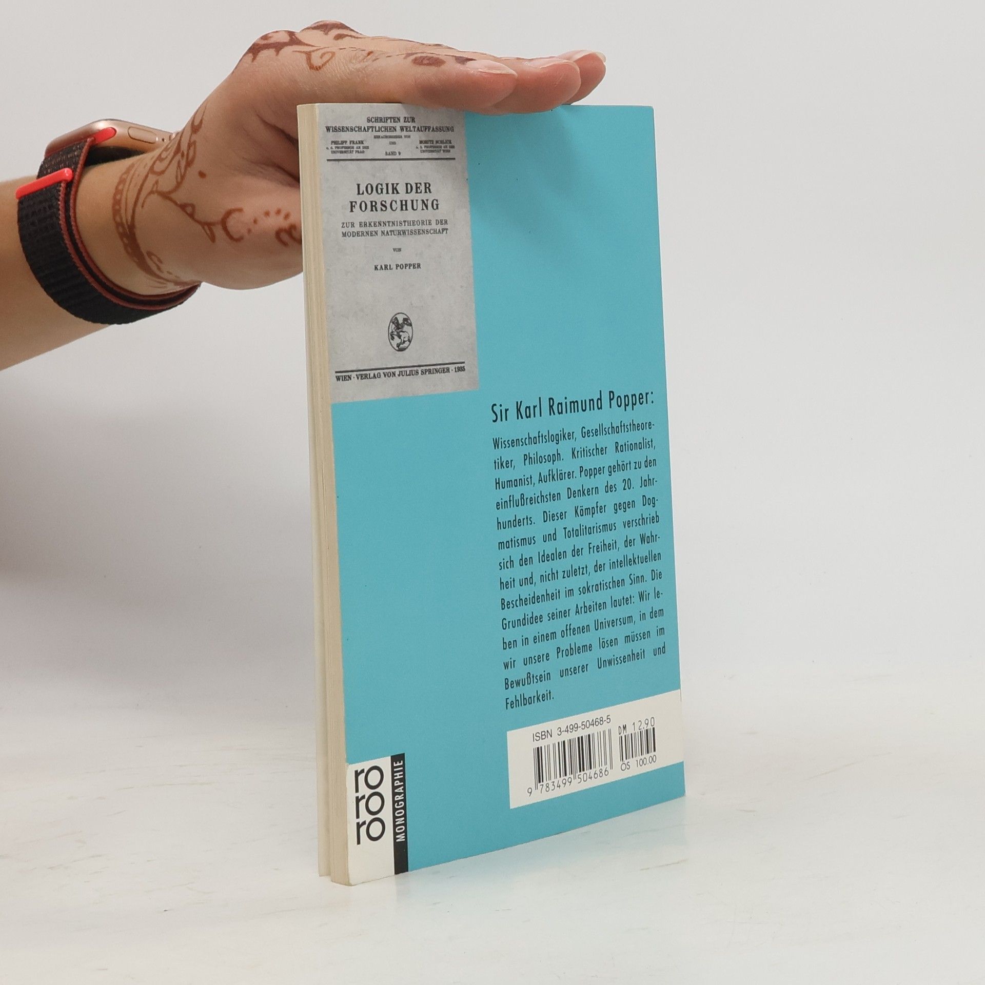 Sir Karl Raimund Popper: Wissenschaftslogiker, Gesellschaftstheoretiker, Philosoph. Kritischer Rationalist, Humanist, Aufklärer. Popper gehört zu den einflußreichsten Denkern des 20. Jahrhunderts. Dieser Kämpfer gegen Dogmatismus und Totalitarismus verschrieb sich den Idealen der Freiheit, der Wahrheit und, nicht zuletzt, der intellektuellen Bescheidenheit im sokratischen Sinn. Die Grundidee seiner Arbeiten lautet: Wir leben in einem offenen Universum, in dem wir unsere Probleme lösen müssen im Bewußtsein unserer Unwissenheit und Fehlbarkeit.