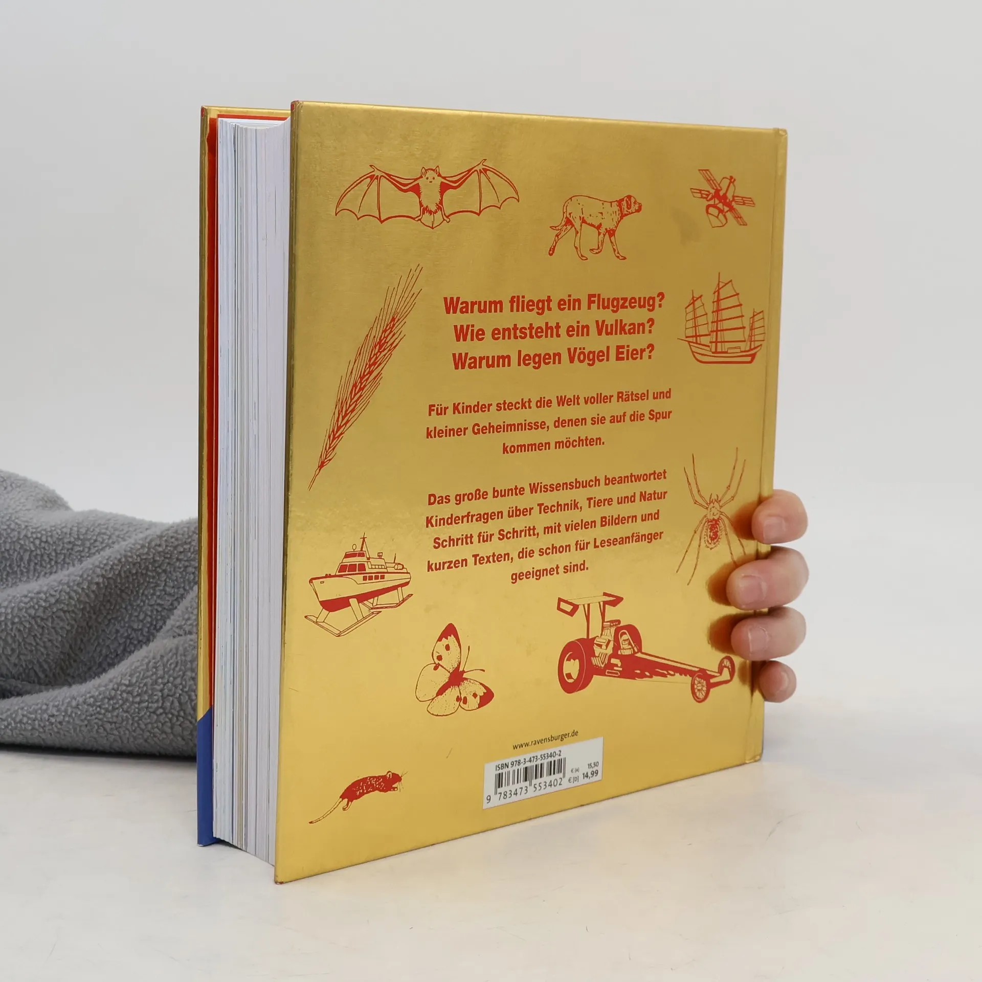 Warum fliegt ein Flugzeug? Wie entsteht ein Vulkan? Warum legen Vögel Eier? Für Kinder steckt die Welt voller Rätsel und kleiner Geheimnisse, denen sie auf die Spur kommen möchten. Das große, bunte Wissensbuch beantwortet Kinderfragen über erste Technik, Tiere und Natur Schritt für Schritt, mit vielen Bildern und kurzen Texten, die schon für Leseanfänger geeignet sind.