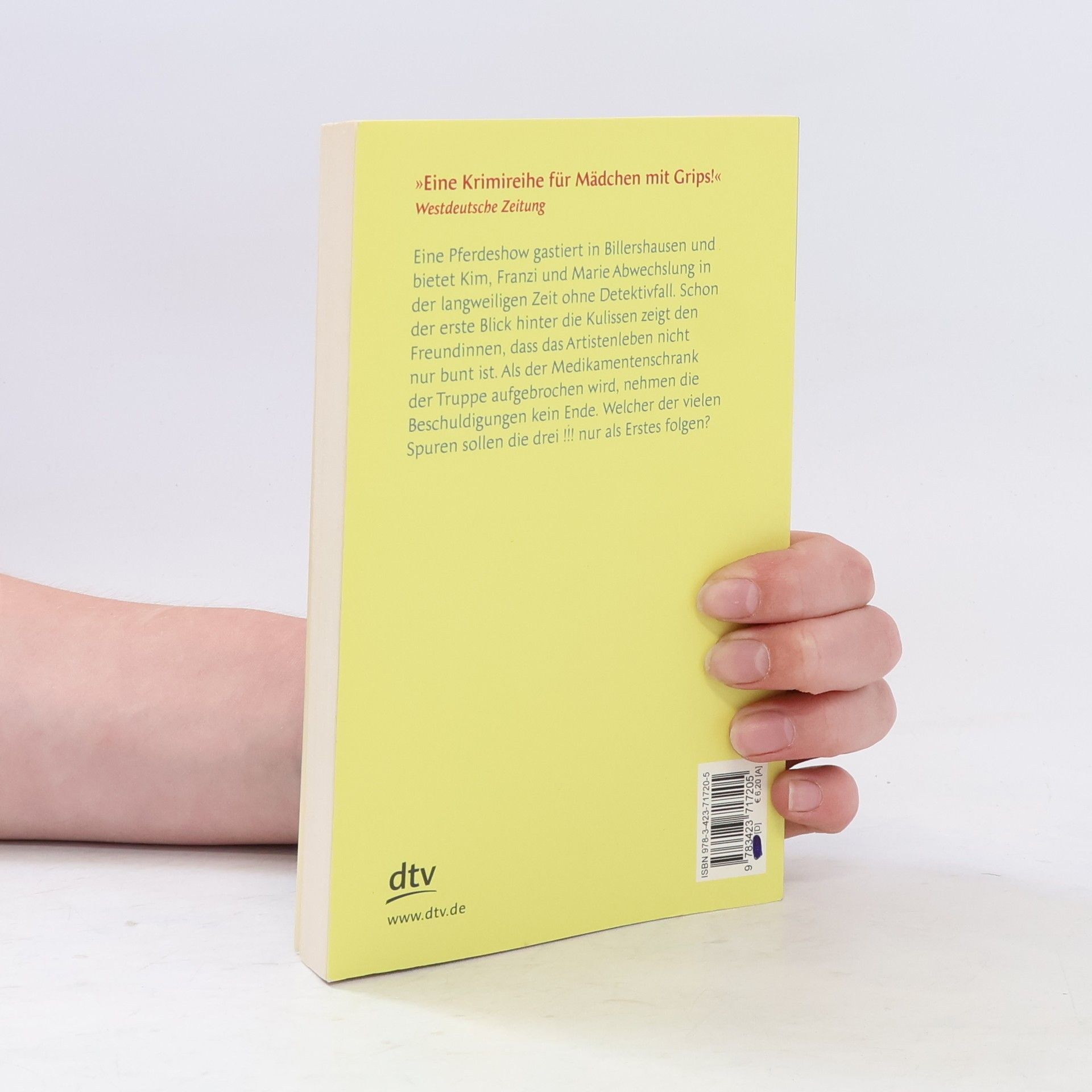 Band 37 der erfolgreichen Krimireihe für Mädchen ab 10 Eine Pferdeshow gastiert in Billershausen und bietet Franzi, Kim und Marie Abwechslung in der langweiligen Zeit ohne Detektivarbeit. Schon der erste Blick hinter die Kulissen zeigt den Freundinnen, dass das Artistenleben nicht nur bunt ist. Als der Medikamentenschrank der Truppe aufgebrochen wird, nehmen die gegenseitigen Beschuldigungen kein Ende. Welcher der vielen Spuren sollen die drei !!! nur als Erstes folgen?