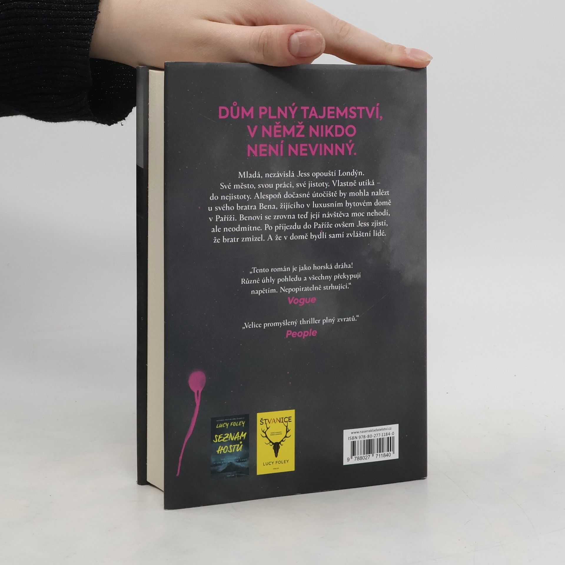 Jess se ocitla ve složité situaci. Je na mizině, přišla o práci a potřebuje někam zmizet. Když zavolala svému nevlastnímu bratrovi Benovi a zeptala se ho, jestli by mohla na nějakou dobu zůstat u něj, moc nadšený nebyl, nakonec ovšem souhlasil. A v přepychovém bytě v Paříži jí jistě bude lépe.Po příjezdu ovšem zjistí, že její bratr zmizel. A že v domě bydlí samí zvláštní lidé. Lidé, kteří mají svá tajemství a kteří se ji odtud snaží vystrnadit. Jess se nevzdává, o bratrovi se jí však nic zjistit nedaří a místo odpovědí má jen další a další otázky. Napětí v domě graduje. Proč se sousedé chovají tak podivně? Co před ní skrývají? A je vůbec Ben ještě naživu?Dáma z vyšší společnosti a její despotický manžel. Alkoholik, jemuž utekla žena. Sympaťák, co se snaží pomoct. Psychicky nemocná dívka. Záhadná domovnice, které nic neunikne.Všichni jsou podezřelí. Všichni něco ví, ale mlčí. A všichni udělají cokoliv, aby jejich strašlivá tajemství nikdy nikdo neodhalil…