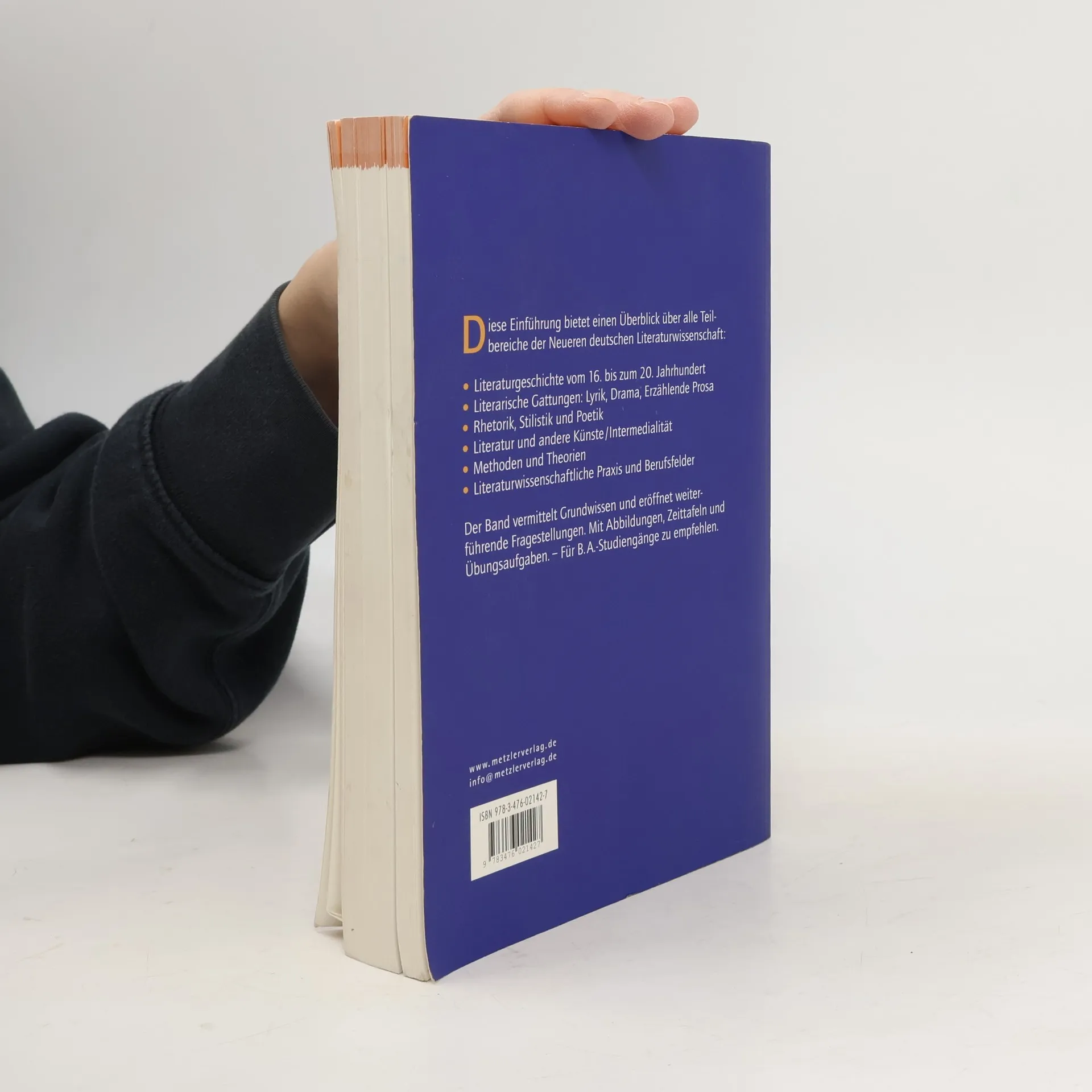 Standardwerk - jetzt noch übersichtlicher gestaltet. Dafür sorgen vor allem das zweifarbige Innen-Layout, Kapiteleinleitungen, Info-Kästen und hervorgehobene Schlüsselbegriffe. Auch inhaltlich überzeugt das Lehrbuch. Von der Frühen Neuzeit bis zur Gegenwart stellen die Autoren alle wichtigen Epochen vor und führen ein in die Analyse der verschiedenen Gattungen. Als wertvolle Ergänzung erweist sich der Ausblick auf die Berufsfelder für Literaturwissenschaftler. In der Neuauflage erstmals mit Übungen.