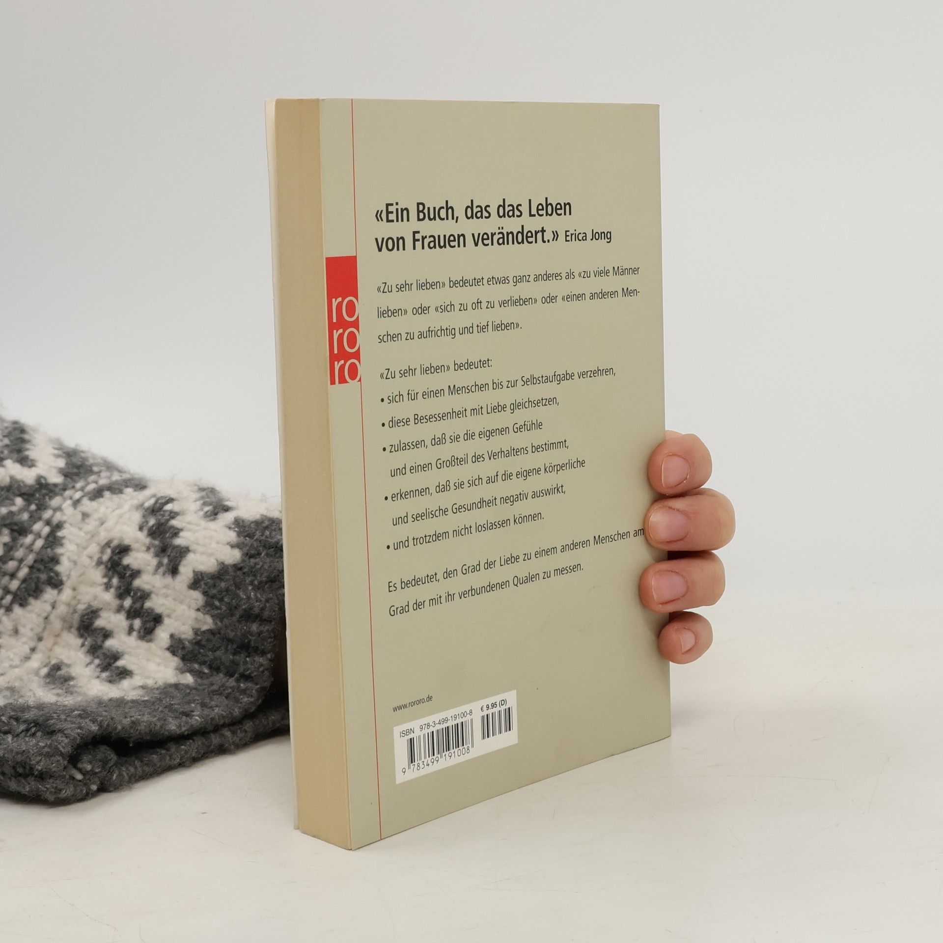 «Ein Buch, das das Lebenvon Frauen verändert.» Erica Jong«Zu sehr lieben» bedeutet etwas ganz anderes als «zu viele Männer lieben» oder «sich zu oft verlieben» oder «einen anderen Menschen zu aufrichtig und tief lieben».«Zu sehr lieben» bedeutet:• sich für einen Menschen bis zur Selbstaufgabe verzehren,• diese Besessenheit mit Liebe gleichsetzen,• zulassen, dass sie die eigenen Gefühleund einen Großteil des Verhaltens bestimmt,• erkennen, dass sie sich auf die eigene körperlicheund seelische Gesundheit negativ auswirkt,• und trotzdem nicht loslassen können.Es bedeutet, den Grad der Liebe zu einem anderen Menschen am Grad der mit ihr verbundenen Qualen zu messen.