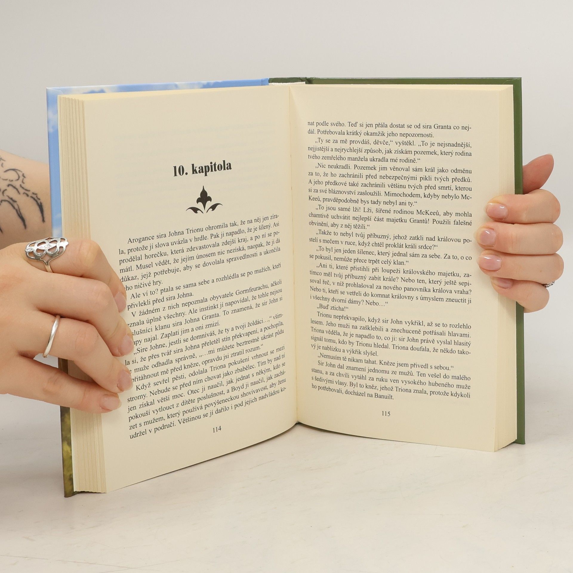 Historická milostná romance ze skotské Vysočiny. Život lady Triony McKeeové je v troskách. Provdala se z lásky a do manželství vkládala naděje. Doufala, že se jí splní sen o krásném rodinném životě, ale záhy ovdověla. Zůstala sama a navíc musí bojovat o svá práva, protože mocný, bohatý a namyšlený majitel vedlejšího panství chce připravit ji a její dceru o majetek. Avšak jediný pohled do podmanivě zelených očí rytíře sira Bretta Murraye, jenž přijel na její panství v doprovodu její sestřenice Ariadny, ji varuje. Slib pomoci ze strany pohledného statného rytíře pro ni může být stejně nebezpečný jako samotný boj o přežití...