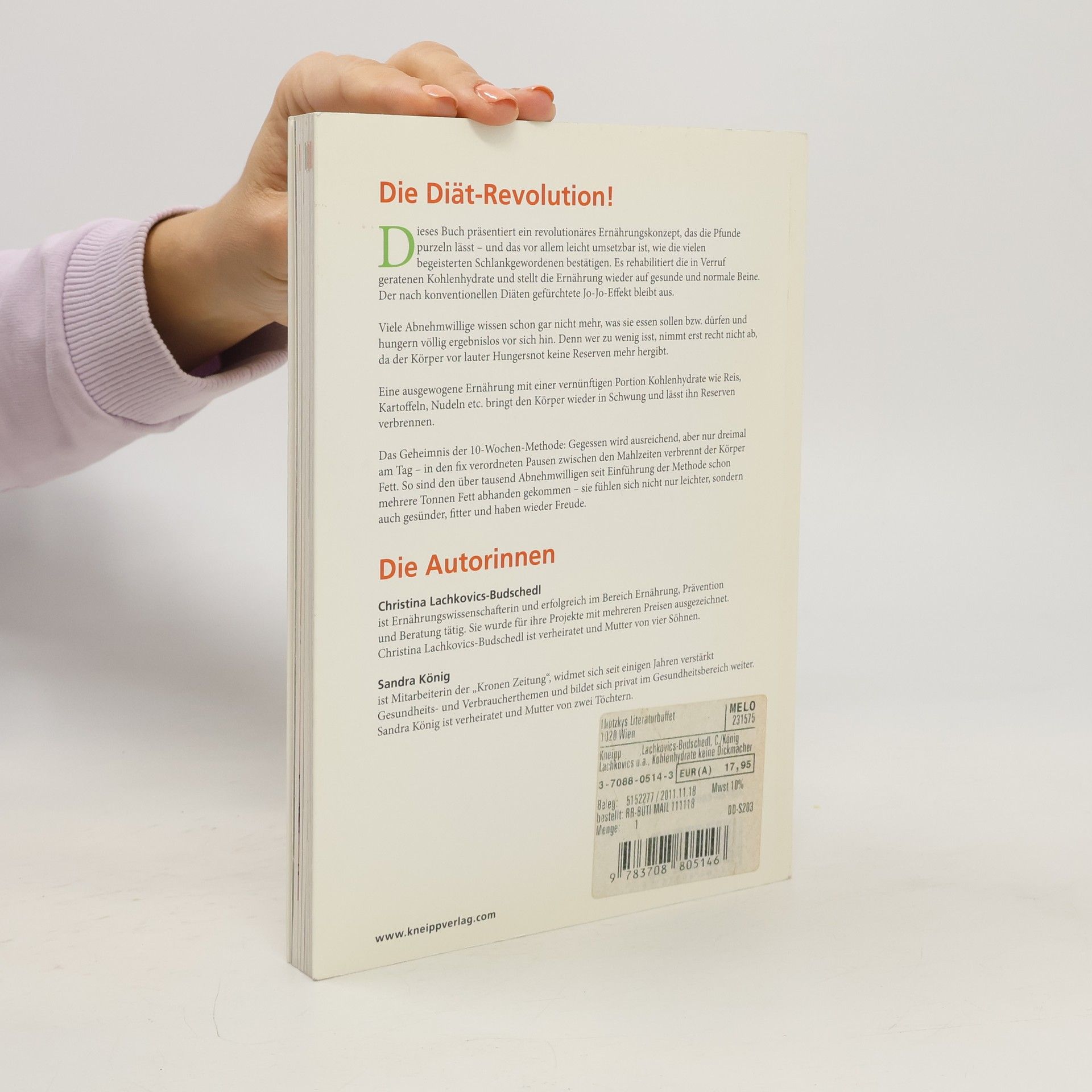 Die Ernährungswissenschafterin Christina Lachkovics-Budschedl hat ein revolutionäres Ernährungskonzept entwickelt, das beim Abnehmen hilft. Sie rehabilitiert die oft kritisierten Kohlenhydrate und fördert eine gesunde Ernährung. Viele Abnehmwillige sind unsicher, was sie essen dürfen, und hungern vergeblich. Zu wenig Essen führt dazu, dass der Körper keine Reserven abgibt. Eine ausgewogene Ernährung mit einer angemessenen Menge an Kohlenhydraten wie Reis, Kartoffeln und Nudeln bringt den Körper in Schwung und fördert die Fettverbrennung. Das Geheimnis der 10-Wochen-Methode liegt in der individuellen Berechnung der Kohlenhydratmenge basierend auf Körpergewicht und -größe. Es wird nur dreimal täglich gegessen, ohne Snacks dazwischen, um Fettverbrennung zu ermöglichen. Lachkovics-Budschedl hat den Erfolg ihrer Methode durch zahlreiche Körperfettmessungen belegt. Seit einem Artikel in der Kronenzeitung im Juni 2010 hat sie bereits 1.000 Personen beim Abnehmen geholfen, darunter Sabine K., die in 10 Wochen 12 kg verlor, und Markus B., der 14 kg abnahm und dabei großzügige Portionen genoss. Das Buch stellt die Methode detailliert vor und bietet einen 10-Wochen-Plan mit Menüvorschlägen.