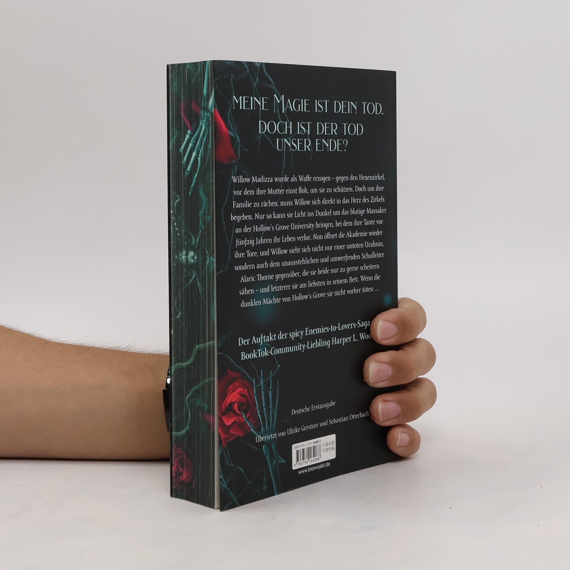 Meine Magie ist dein Tod – doch ist der Tod unser Ende? Willow Madizza wurde als Waffe erzogen – gegen den Hexenzirkel, vor dem ihre Mutter einst floh, um sie zu schützen. Doch um ihre Familie zu rächen, muss Willow sich direkt in das Herz des Zirkels begeben. Nur so kann sie Licht ins Dunkel um das blutige Massaker an der Hexenakademie Hollow’s Grove bringen, bei dem ihre Tante vor 50 Jahren ihr Leben verlor. Nun öffnet die Universität wieder ihre Tore, und Willow sieht sich nicht nur einer untoten Urahnin, sondern auch dem unausstehlichen Schulleiter Alaric Thorne gegenüber, die sie nur zu gerne scheitern sähen – und letzterer sie am liebsten in seinem Bett. Wenn die dunklen Mächte von Hollow’s Grove sie nicht vorher töten … Enemies-to-Lovers, Forbidden Romance und herrlich undurchschaubare Charaktere – die spicy Romantasy von »New York Times«-Bestsellerautorin Harper L. Woods bei Blanvalet. *** mit Farbschnitt in limitierter Auflage***