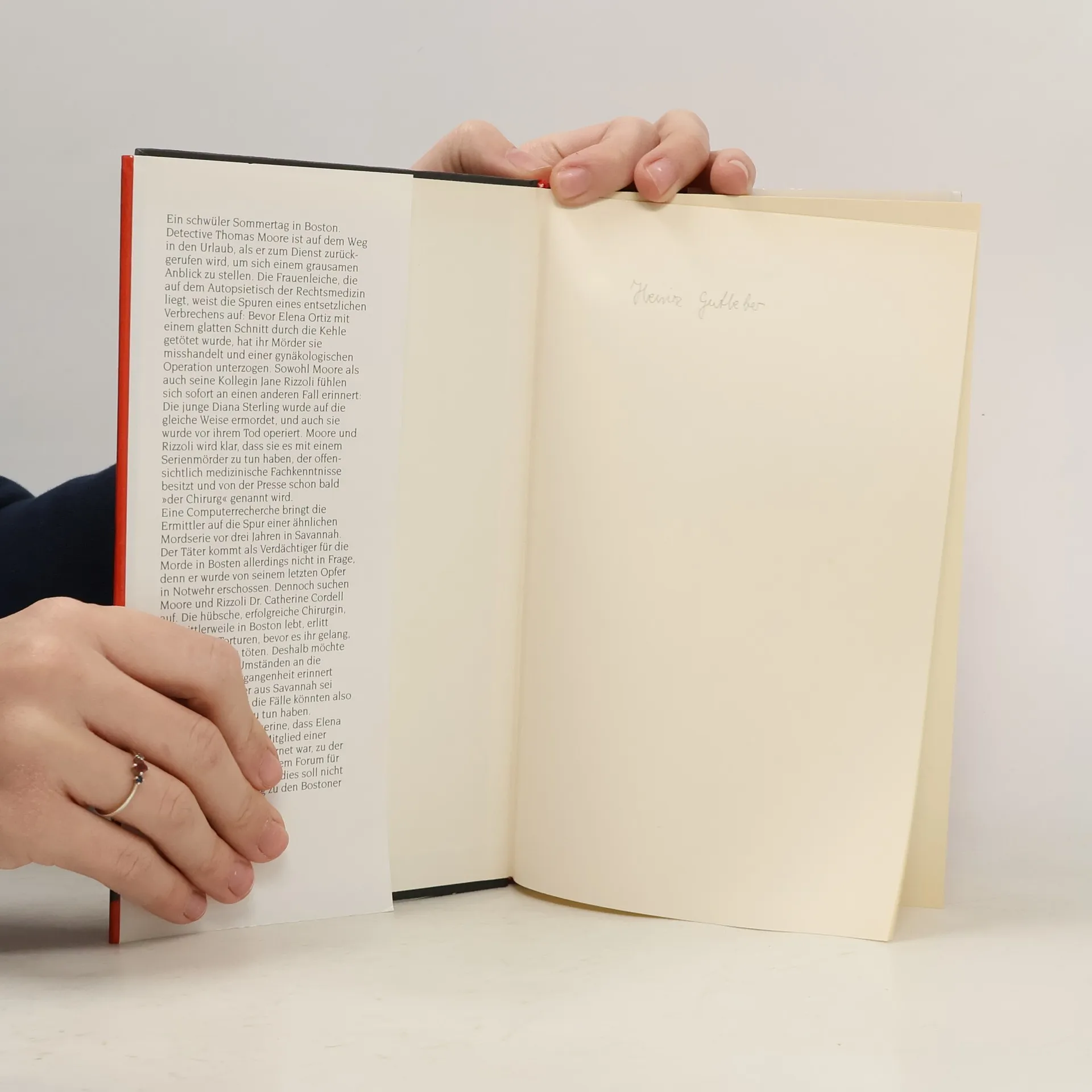 In Boston dringt ein Unbekannter nachts in die Wohnungen von allein stehenden Frauen ein, unterzieht sie einem gynäkologischen Eingriff und tötet sie. Die einzige Spur führt Detective Thomas Moore und Inspector Jane Rizzoli zu der jungen Chirurgin Catherine Cordell, die drei Jahre zuvor nach ähnlichem Muster überfallen wurde, den Täter aber in Notwehr erschoss. Und bald wird klar, dass Catherine erneut zur Zielscheibe eines psychopathischen Mörders geworden ist ...